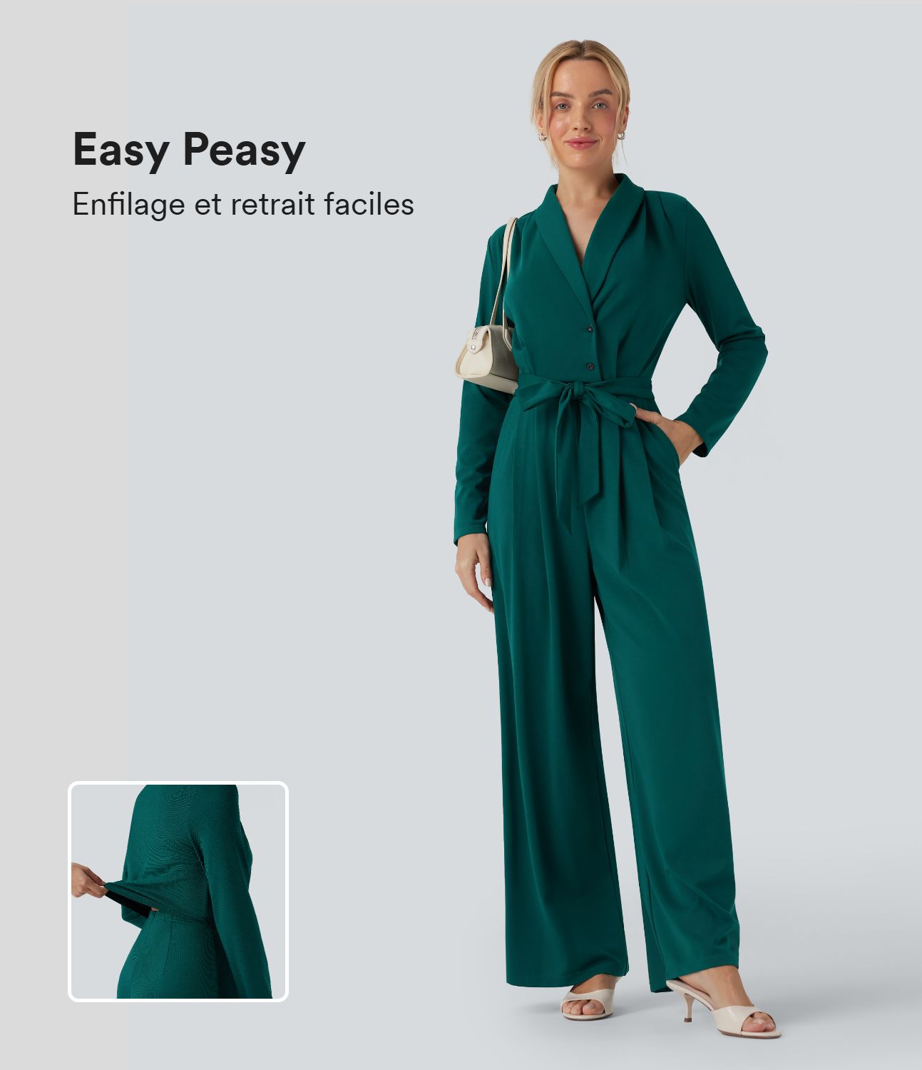Combinaison col V manches longues ceinturée avec poches - Easy Peasy