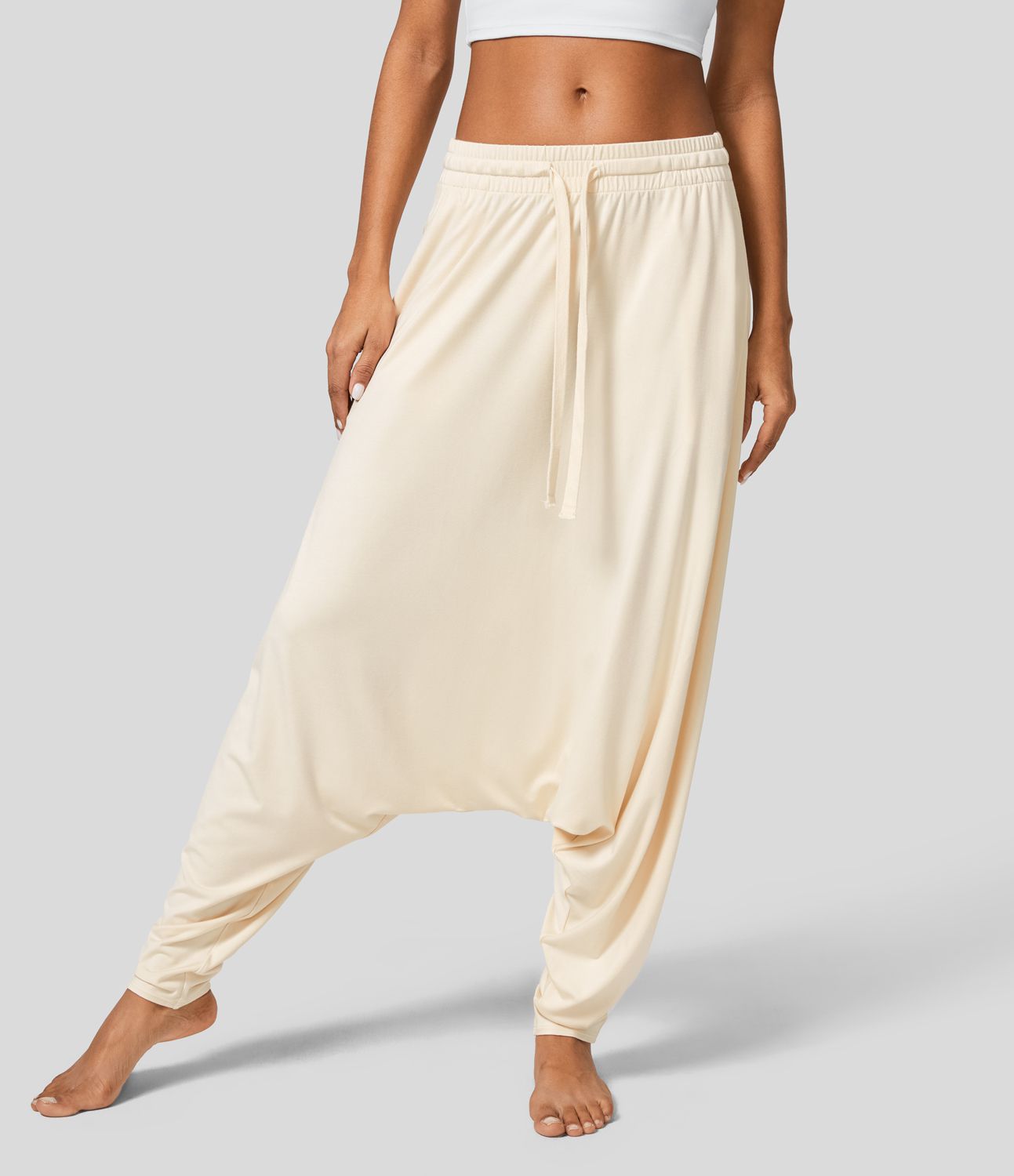 Pantalon de Yoga Harem à Taille Basse avec Cordon de Serrage et Poches Latérales