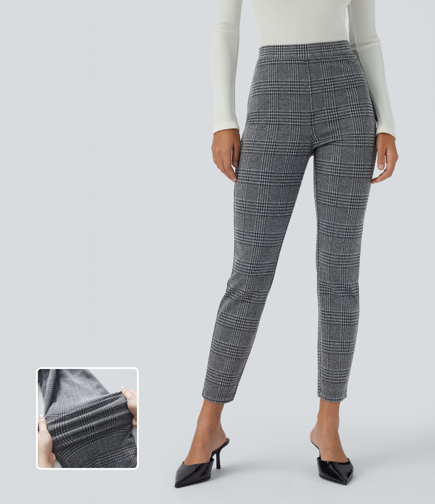 Pantalon tailleur skinny Halara Flex™ taille haute avec poches arrière, motif pied-de-poule à carreaux