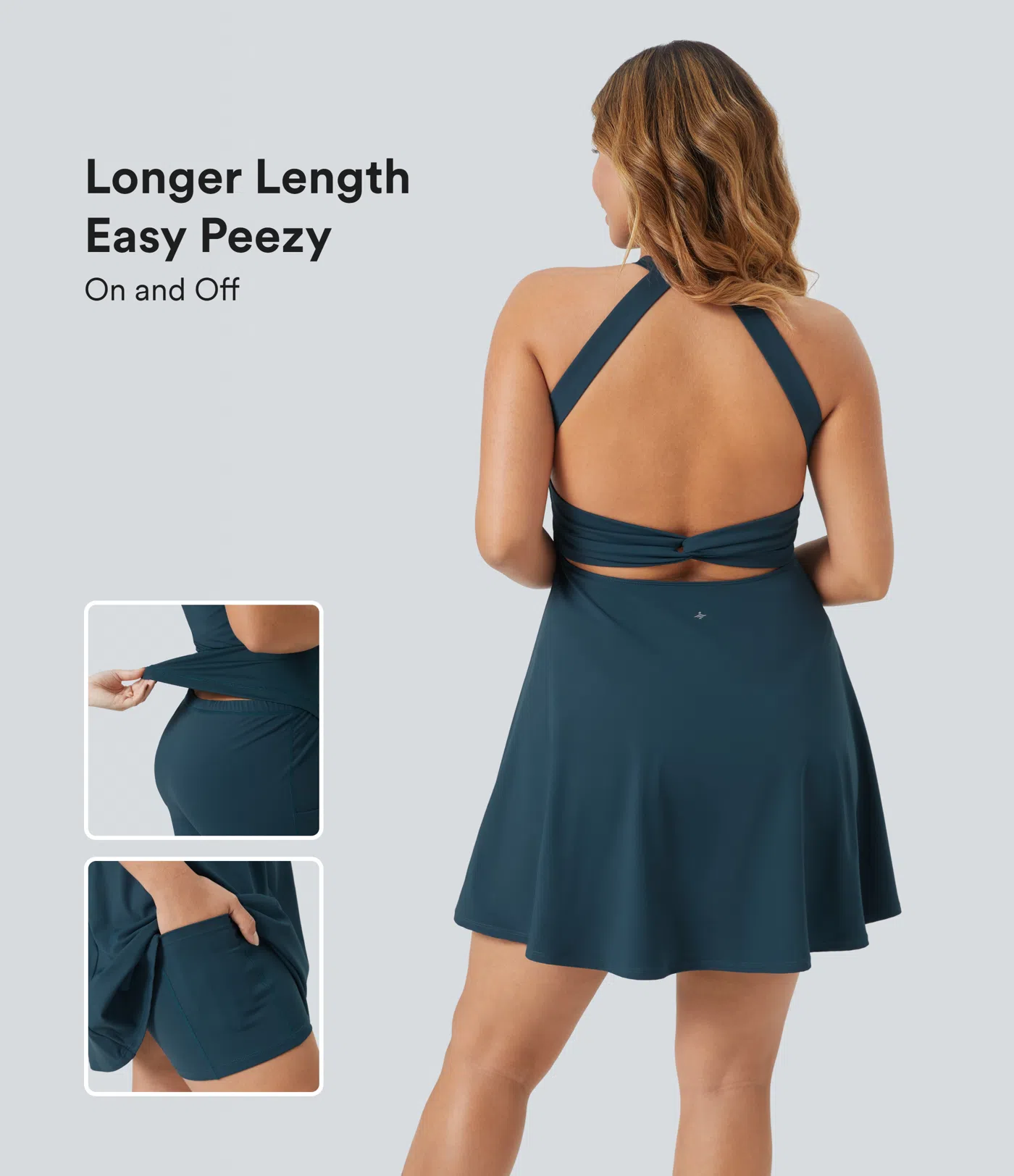 $80.95 USD$89.95 USD005Robe tennis active 2-en-1 Halara Flex™ Cool Touch jean extensible tricoté délavé dos nu torsadé ourlet plissé avec poches