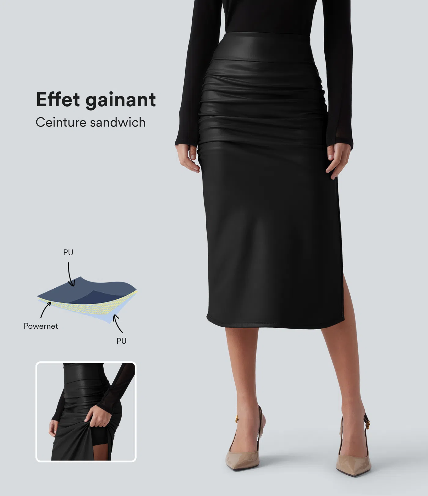 29,95 €43,95 €004.7Jupe mini moulante 2-en-1 en molleton et tissu enduit taille haute gainante avec fronces et ourlet arrondi - Longueur plus longue
