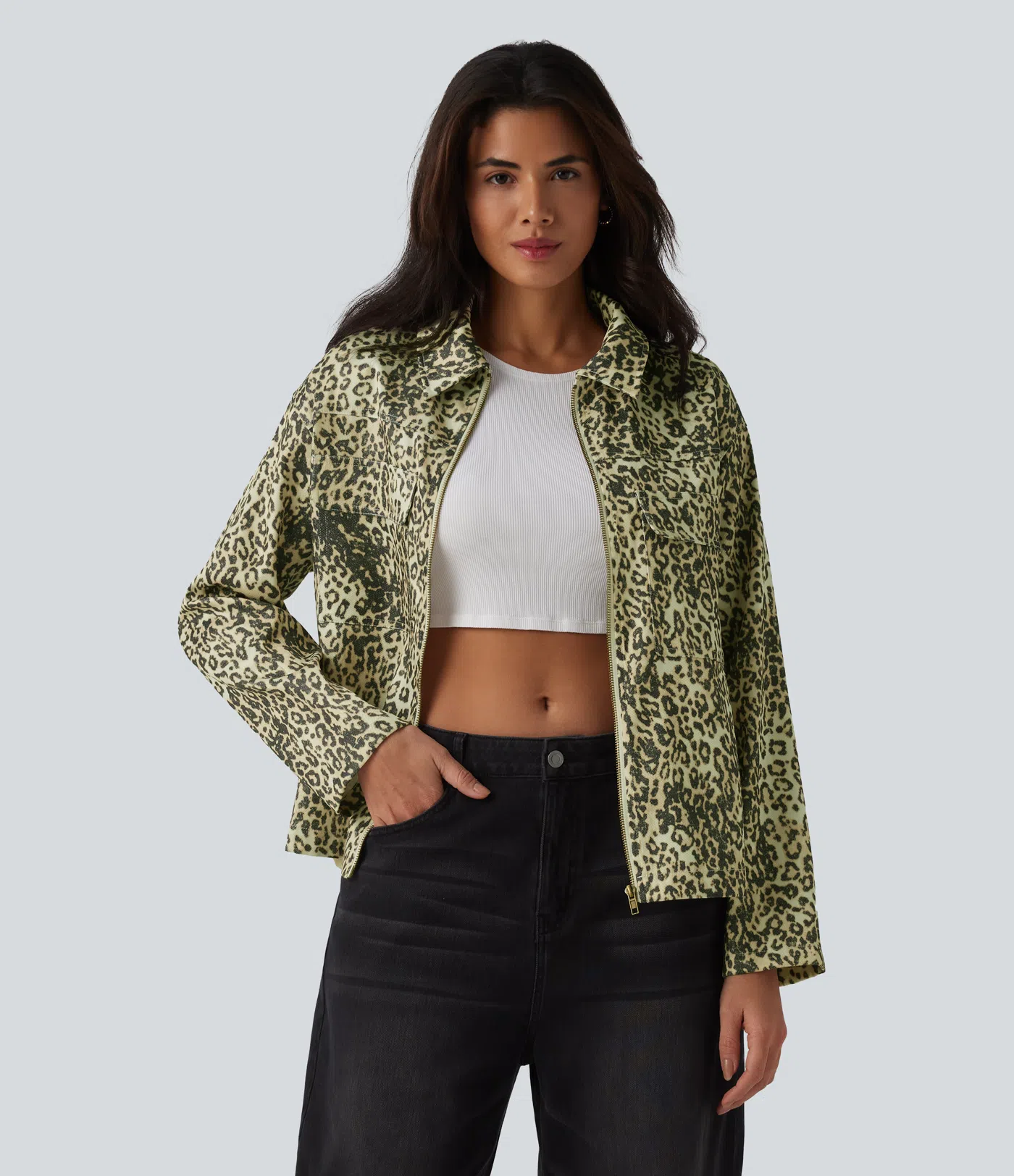 53,95 €64,95 €004.9Offres limitées !Veste décontractée Halara UltraSculpt™ imprimé léopard col montant manches longues avec trous pour pouces et poches
