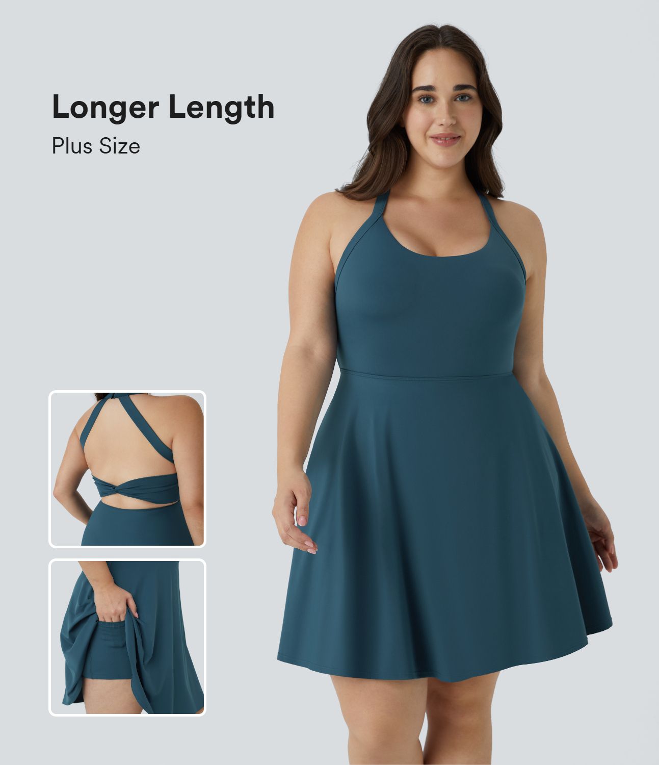 Robe Danse Barre Ballet Grande Taille 2 en 1 Col en U Dos Nu avec Découpe Torsadée et Poches Latérales - Plus Longue