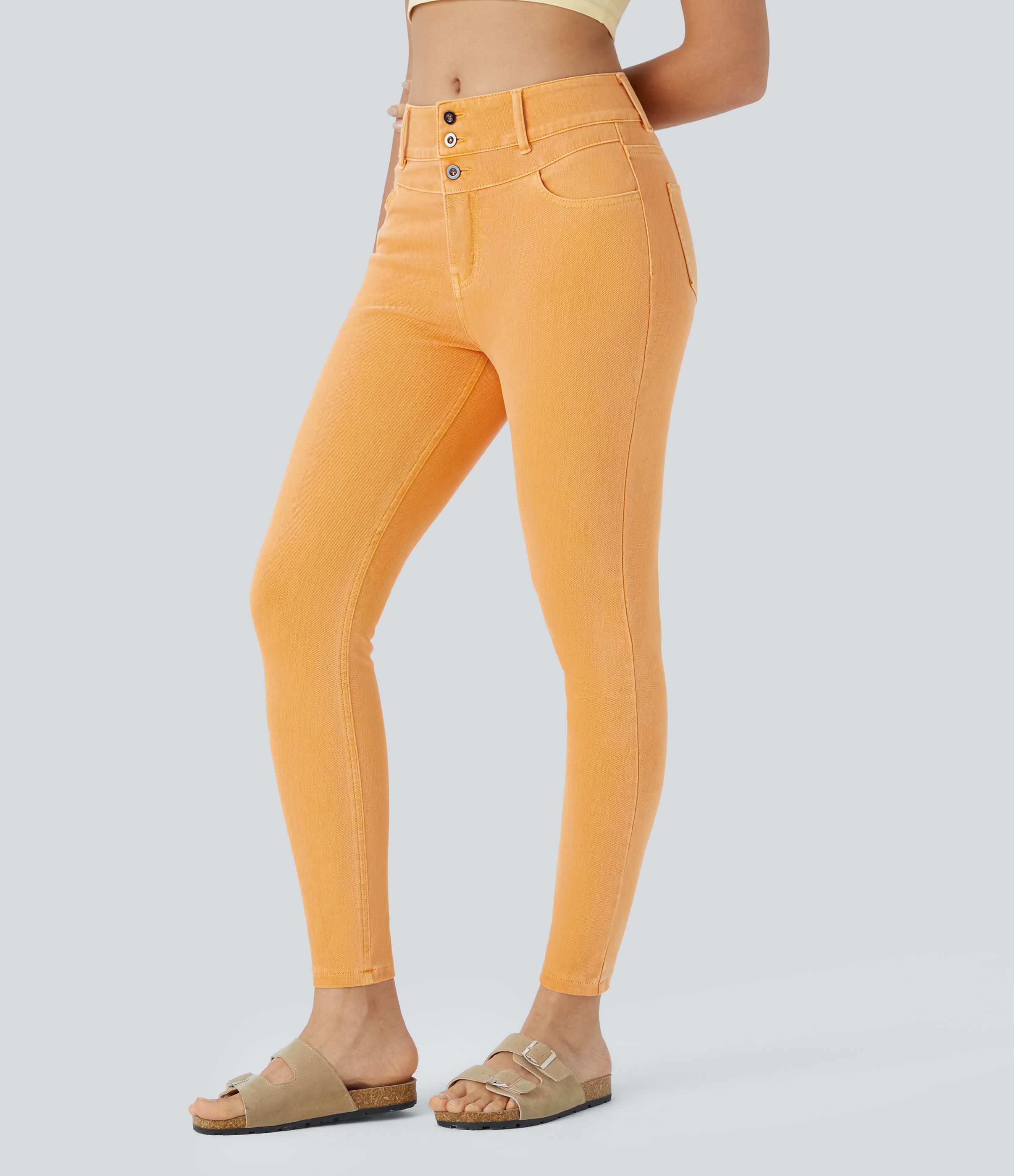 Halara Flex™ Jean Skinny Casual à Taille Haute avec Boutons Zip Multiples Poches Coloré et Tricoté Extensible
