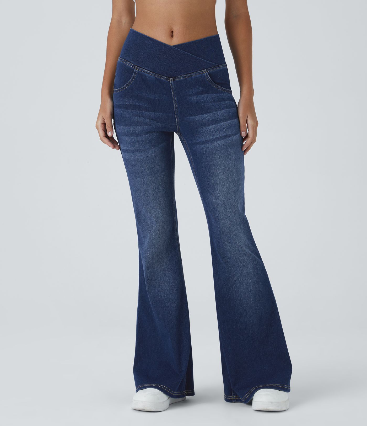 Halara Flex™ Jean Évasé à Taille Haute avec Poche Crossover Tissu Élastique Lavé