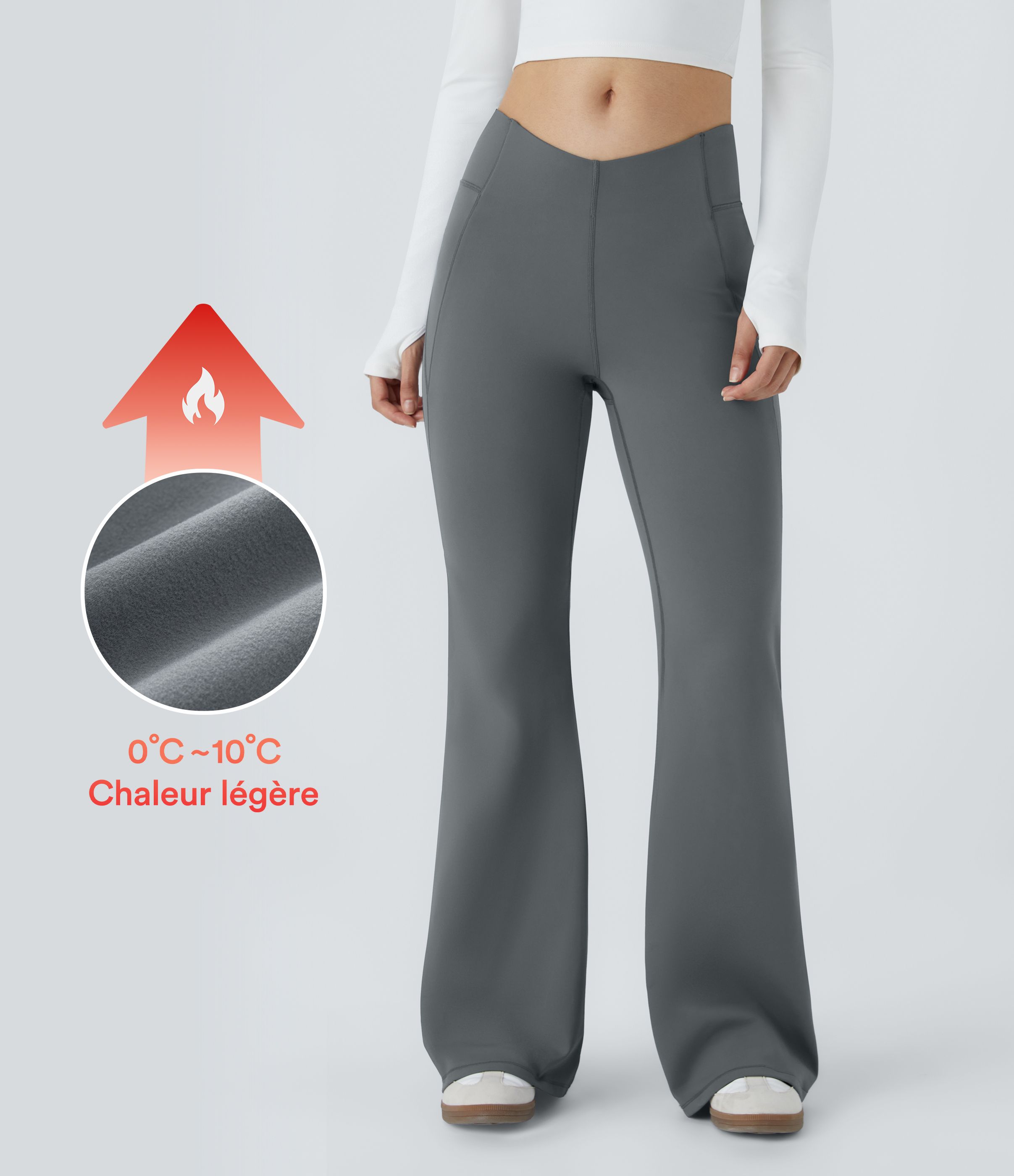 Pantalon de yoga évasé thermique taille haute avec ceinture en V