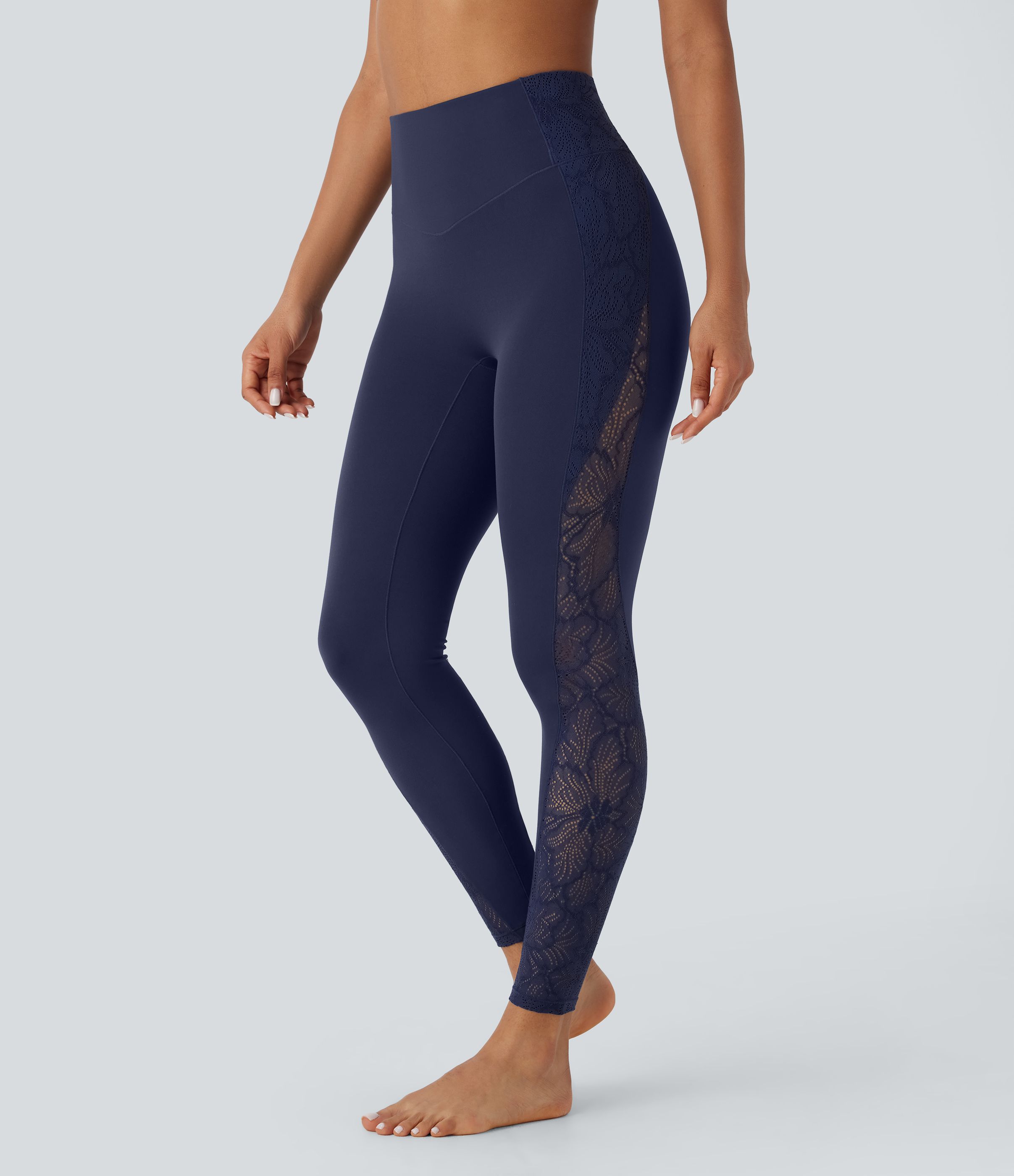 Softlyzero™ Legging 7/8 de yoga taille haute avec poche arrière et dentelle contrastée - Protection UPF50+
