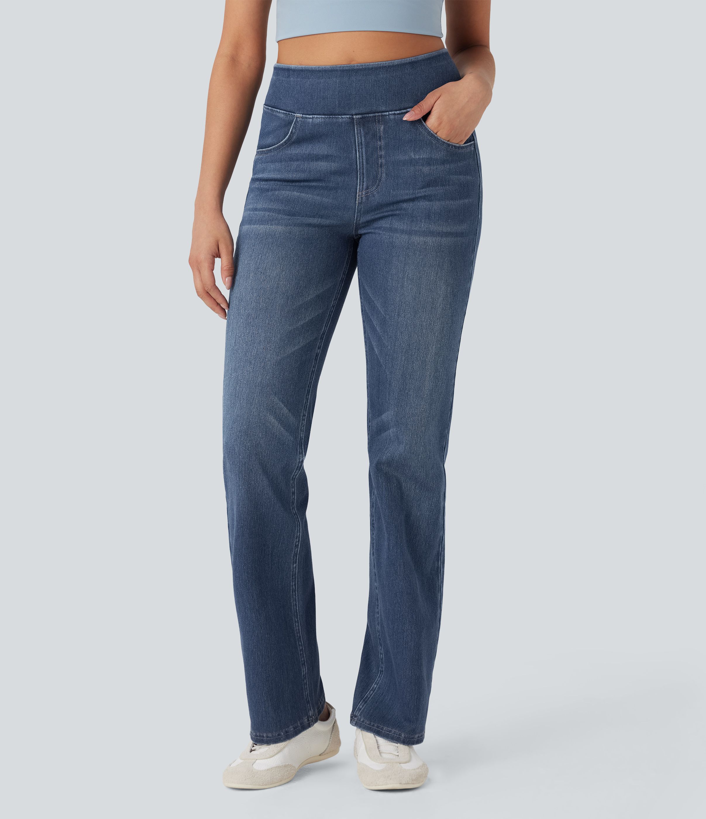 Jean évasé Halara Flex™ taille haute en maille extensible délavé avec poches