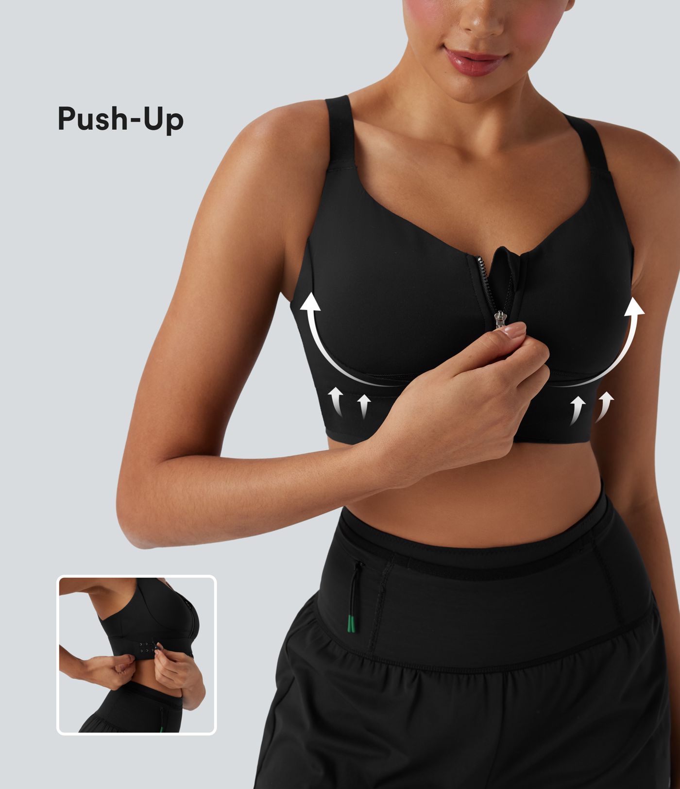 Brassière de sport course SpeedWave™ soutien intermédiaire push-up zip boucle réglable séchage rapide bonnets A-C