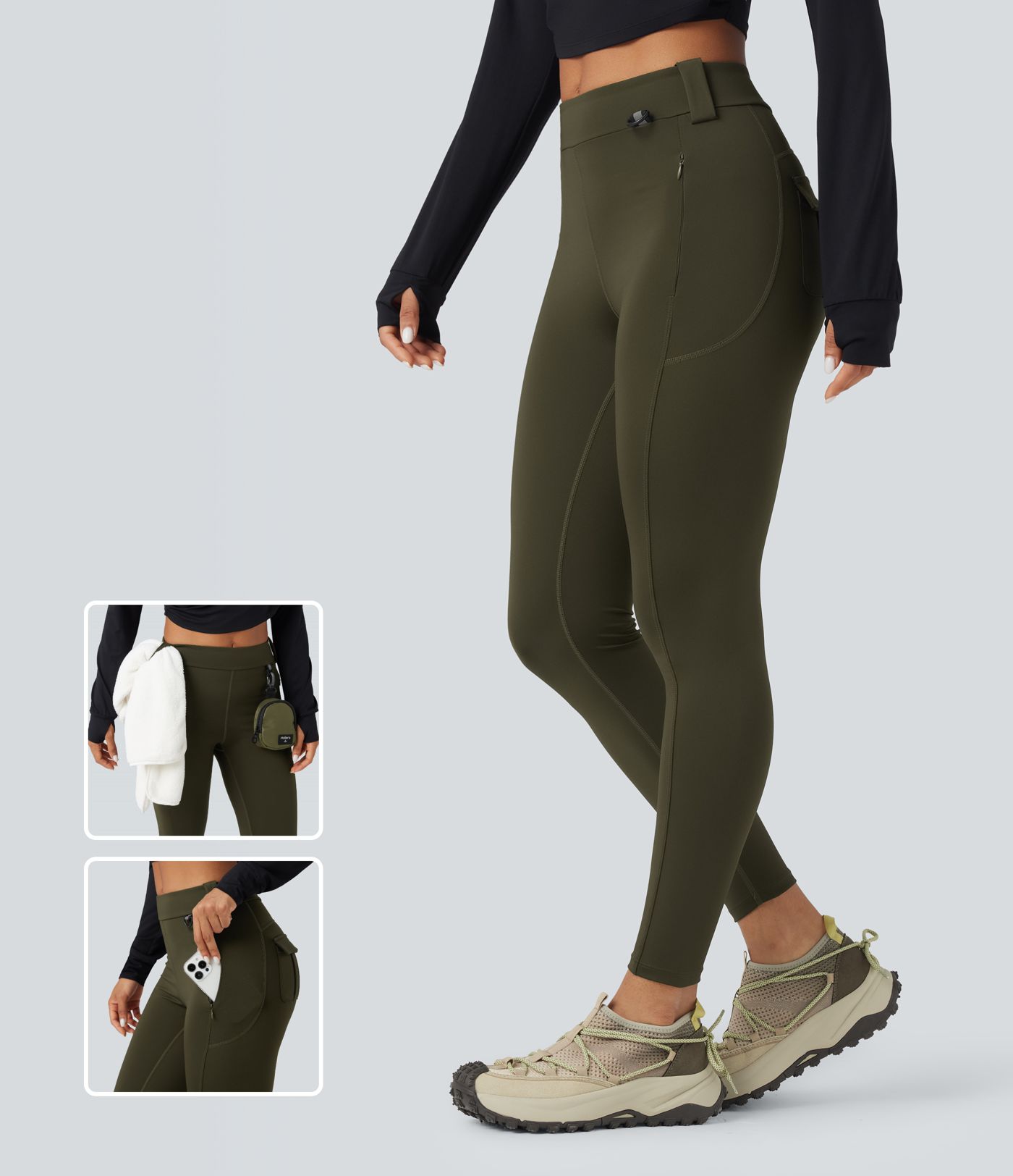 Legging cargo de randonnée résistant à l'usure taille mi-haute avec poches