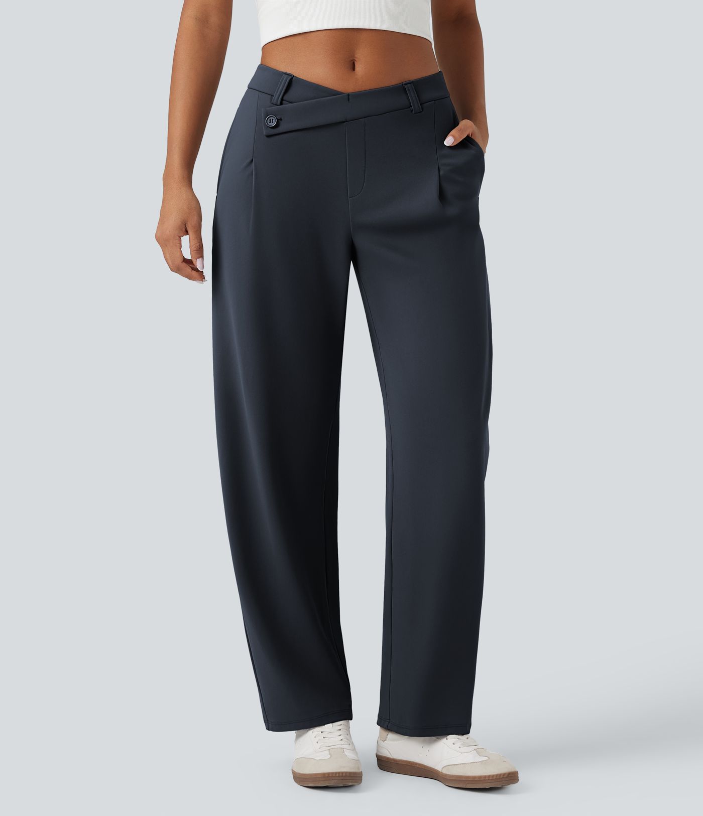 Pantalon fuselé décontracté asymétrique taille mi-haute avec poches