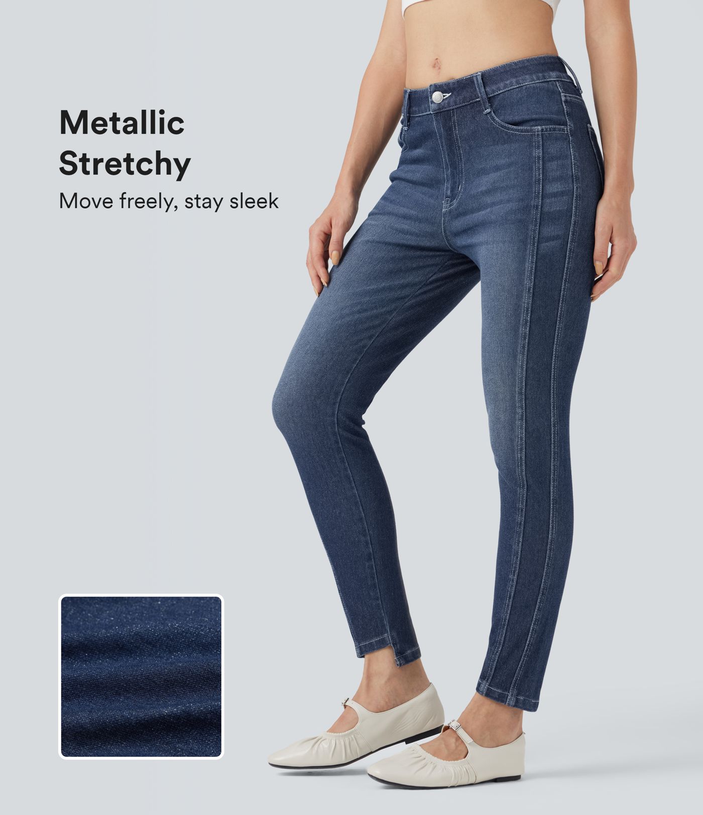 Jean skinny Halara Flex™ métallisé taille basse 7/8 avec poches