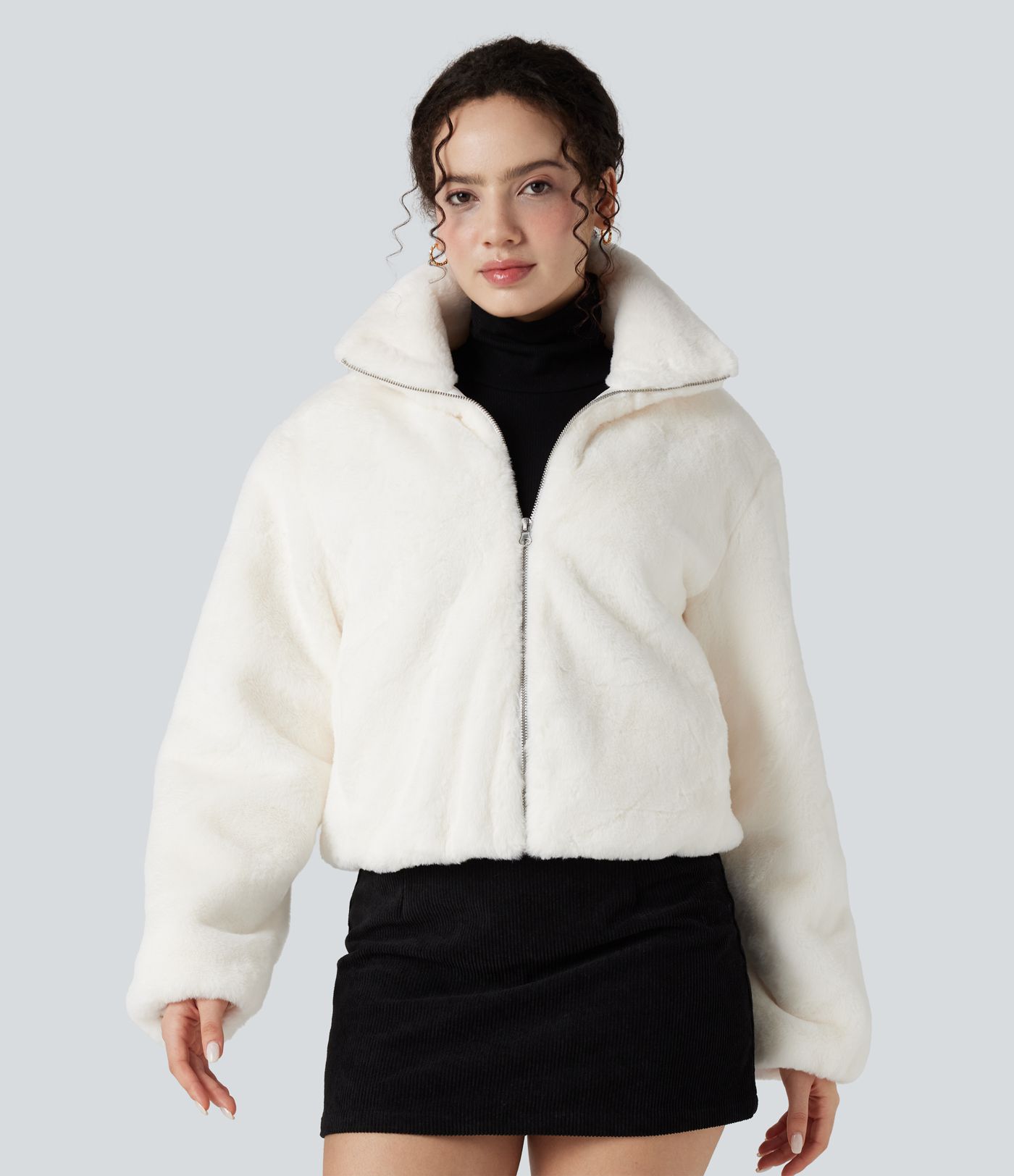 Veste sherpa col montant manches longues avec fermeture éclair