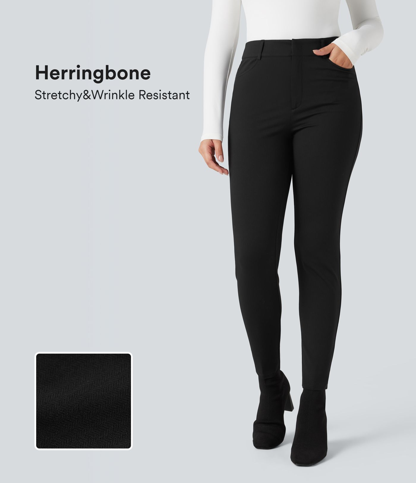 Pantalon tailleur Halara Flex™ skinny chevrons taille haute avec poches