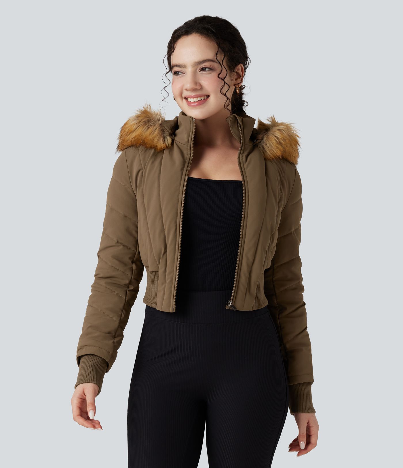 Veste matelassée à capuche amovible bordure fausse fourrure manches longues