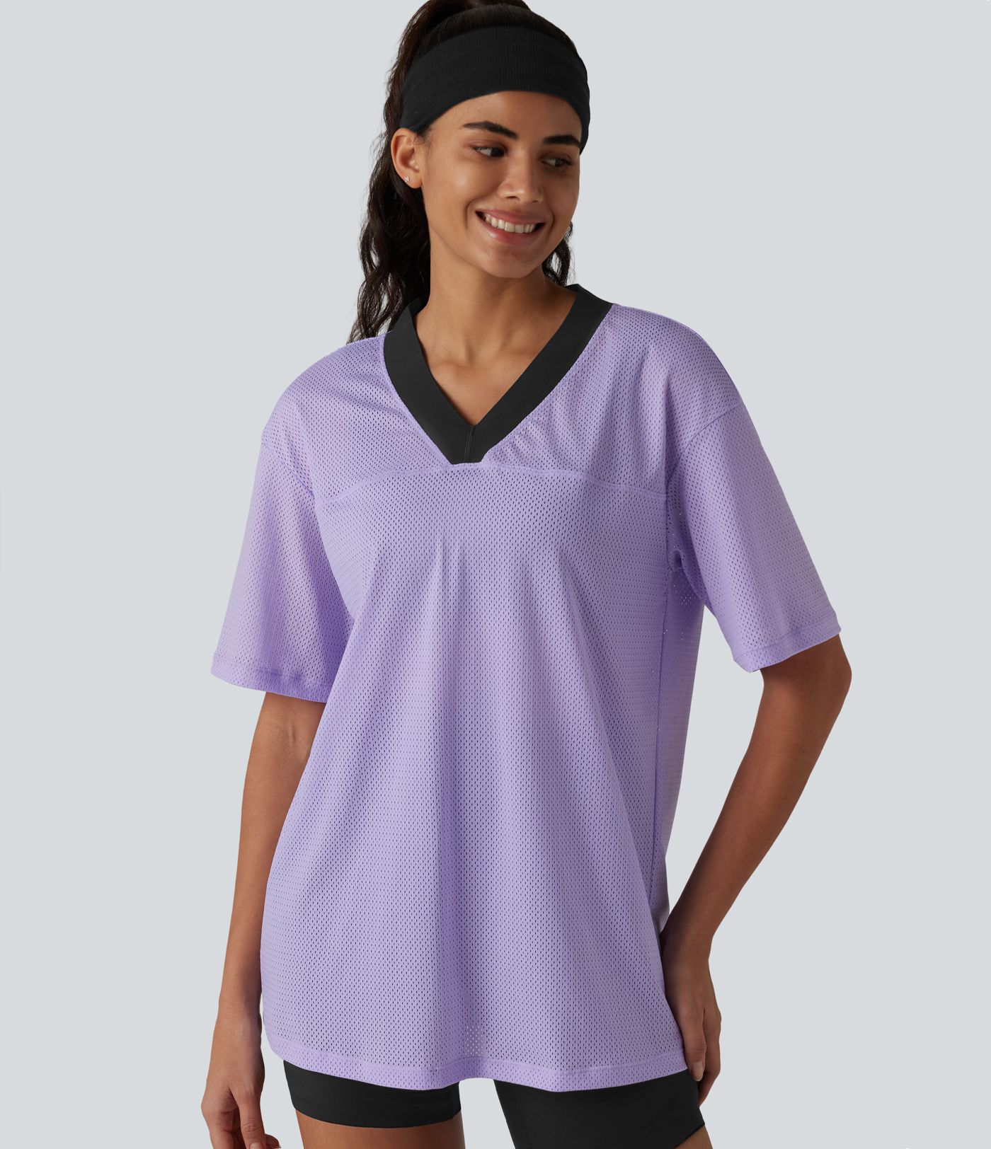 Haut de sport d'entraînement ample col V en maille respirante color block