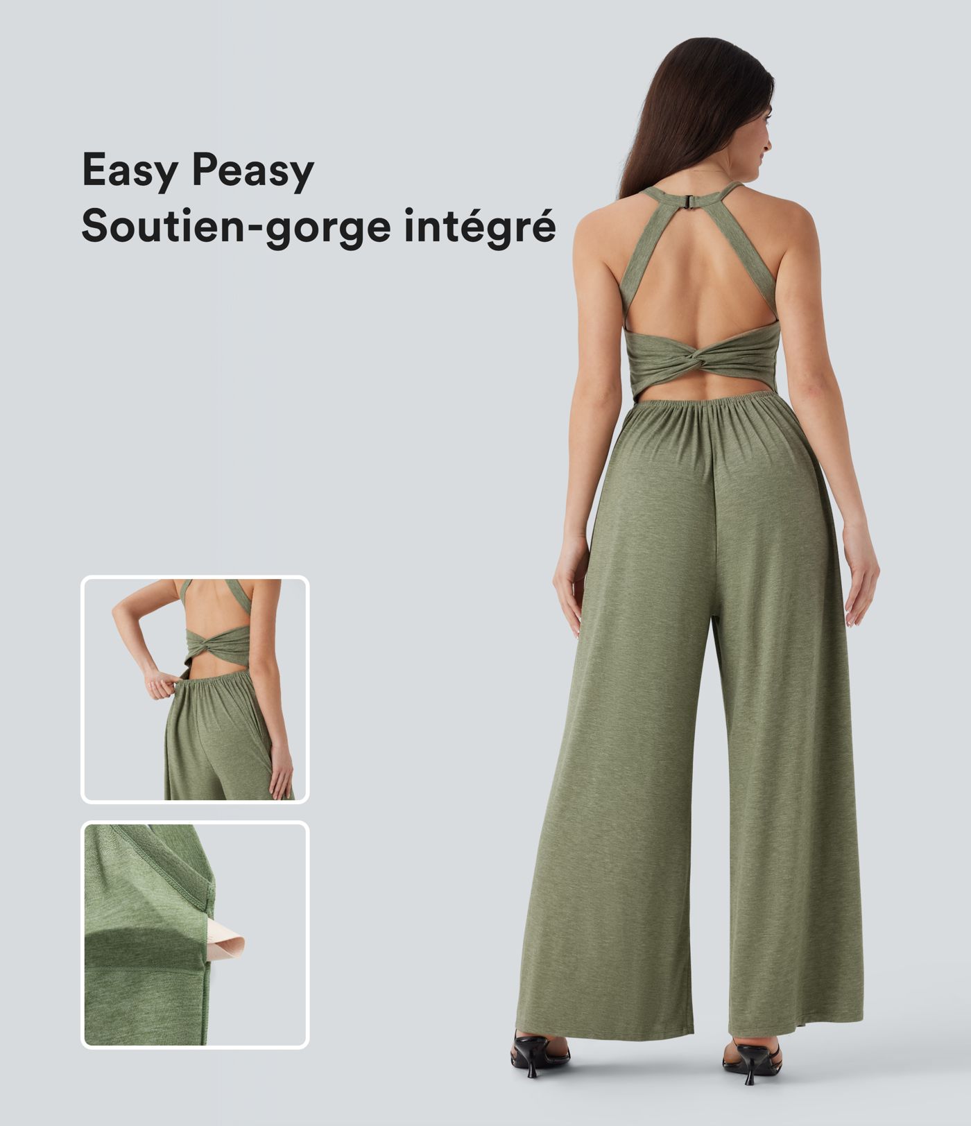 Combinaison décontractée dos nu torsadée large fluide avec brassière intégrée et poches - Easy Peasy Edition