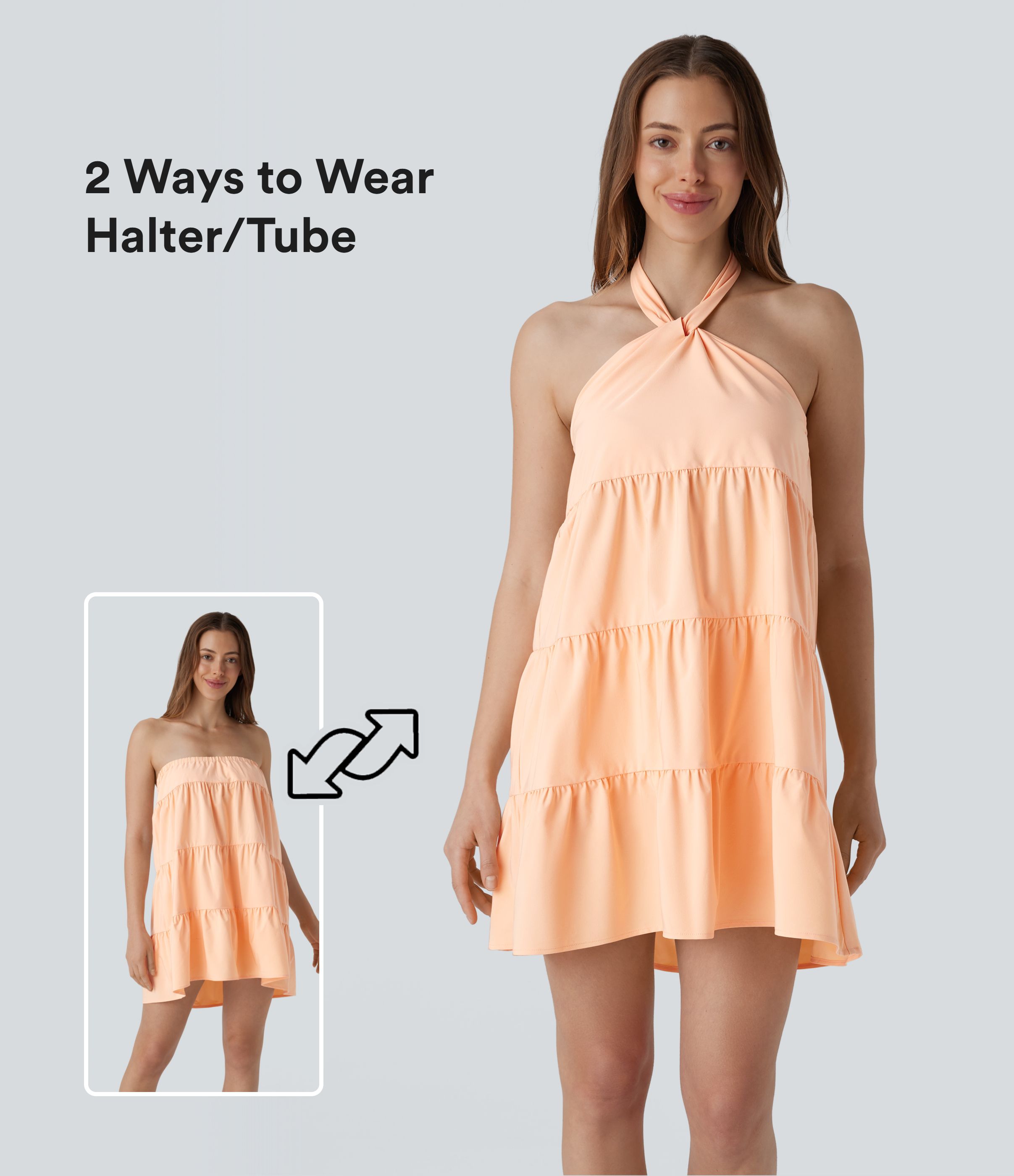 Breezeful™ Robe de station balnéaire mini 2 pièces à volants dos nu col licou à séchage rapide