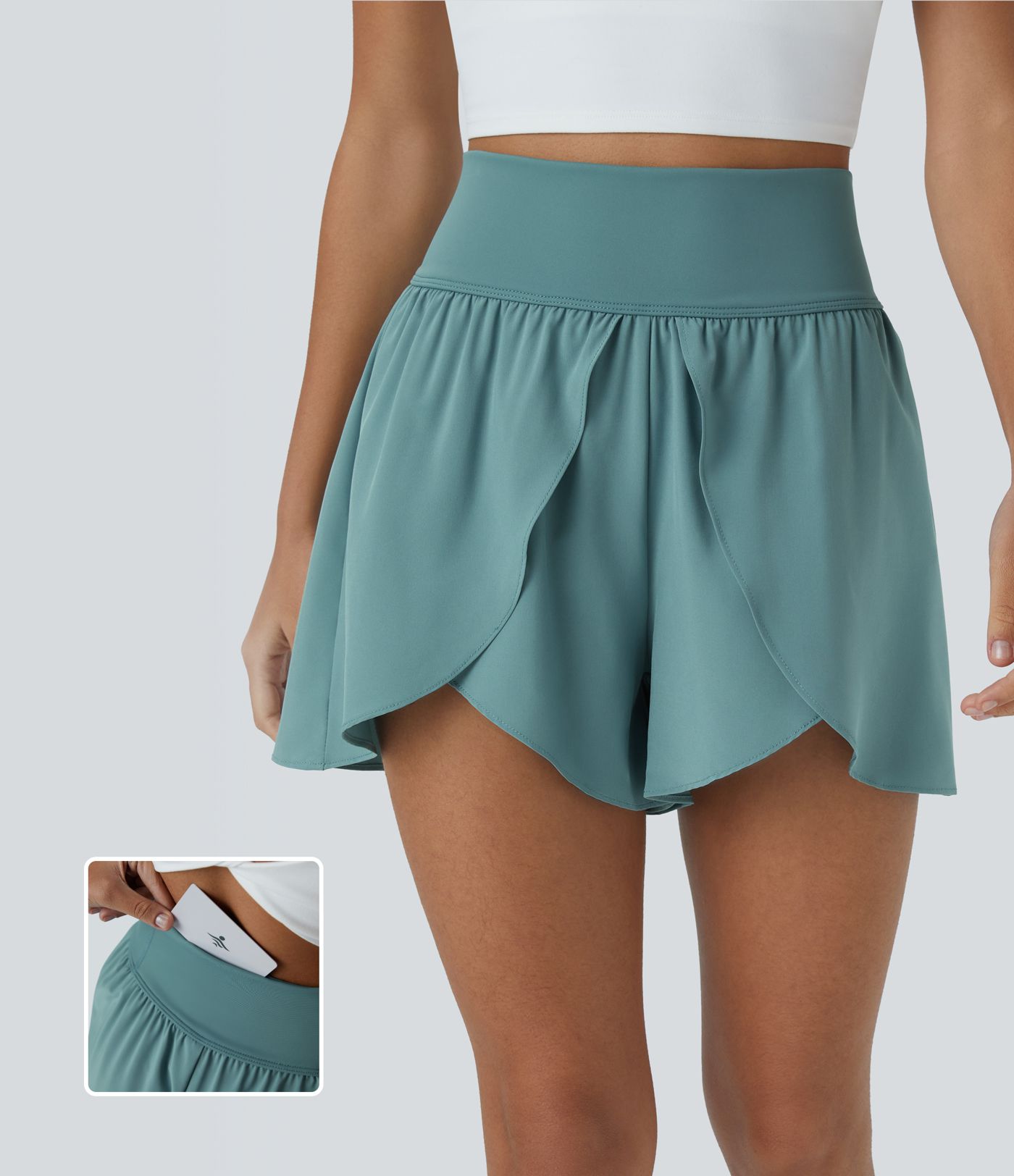 Breezeful™ Short 8,8cm Danse à Séchage Rapide et Taille Haute avec Poche à la Ceinture Arrière Coupe Fluide et Fendue