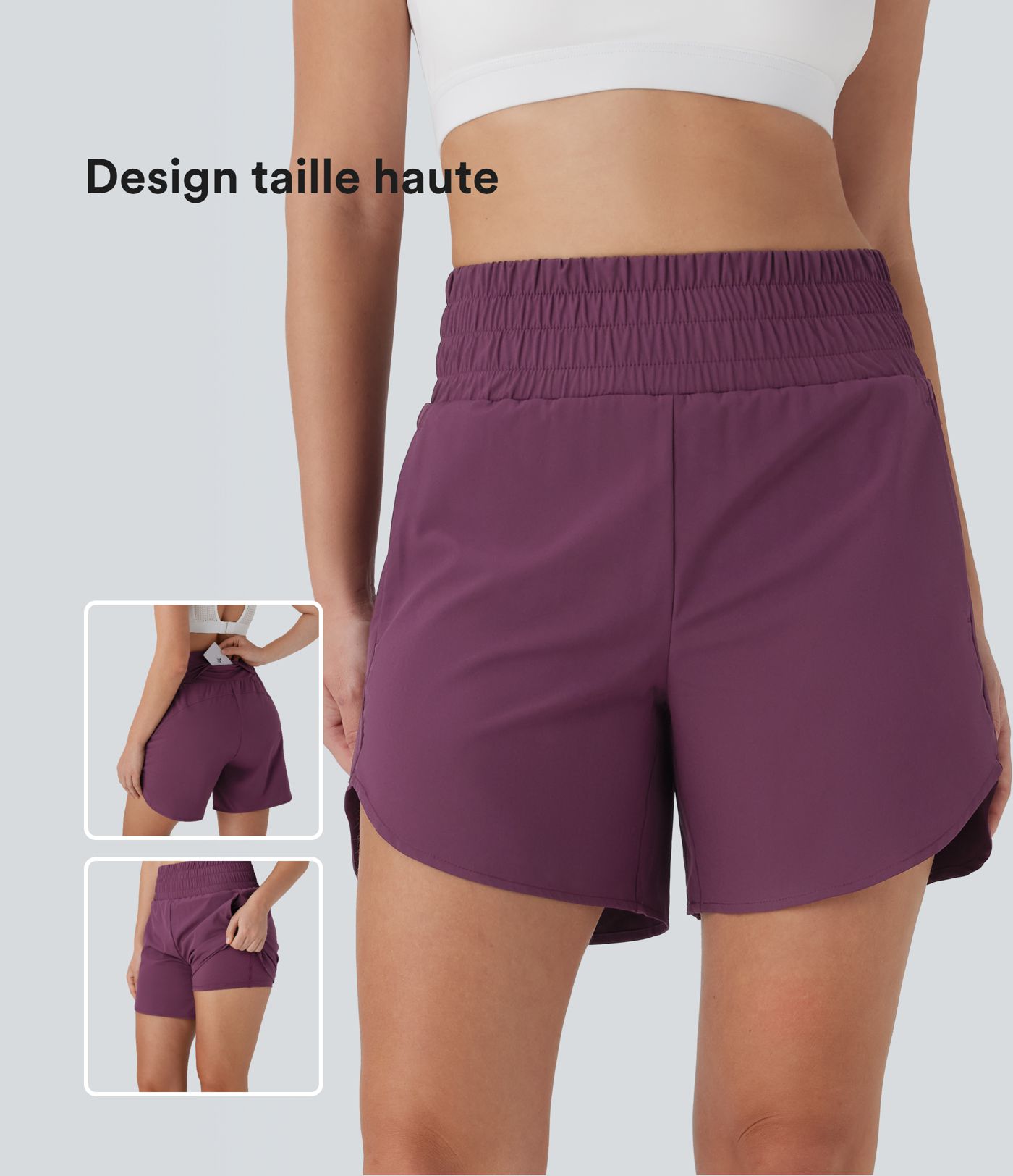 Short de course 2-en-1 Breezeful™ taille haute, poches multiples, ourlet arrondi, séchage rapide 12,5 cm - Longueur prolongée