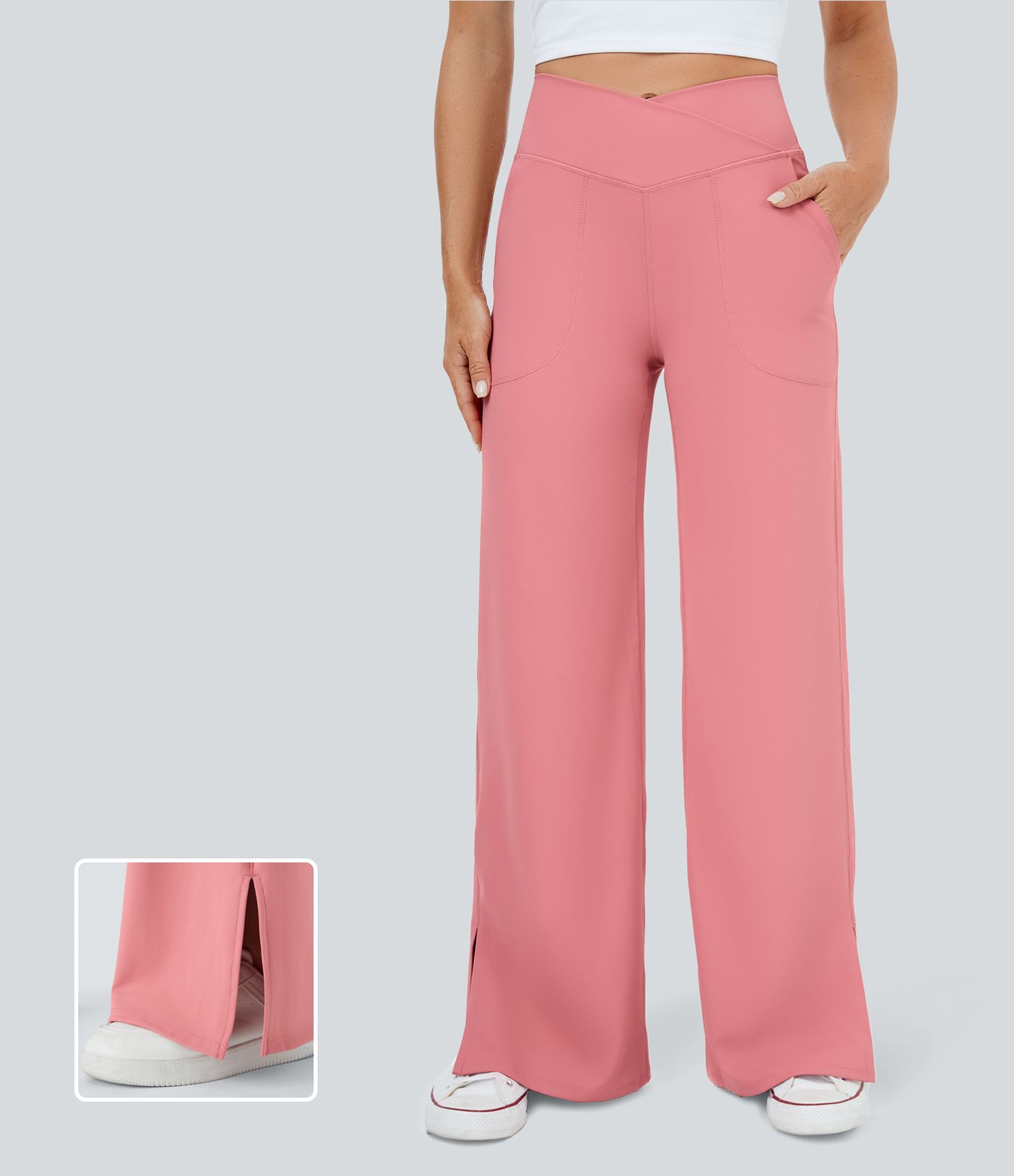 Pantalon Large Yoga Poches Croisées Ourlet Fendu - Smile