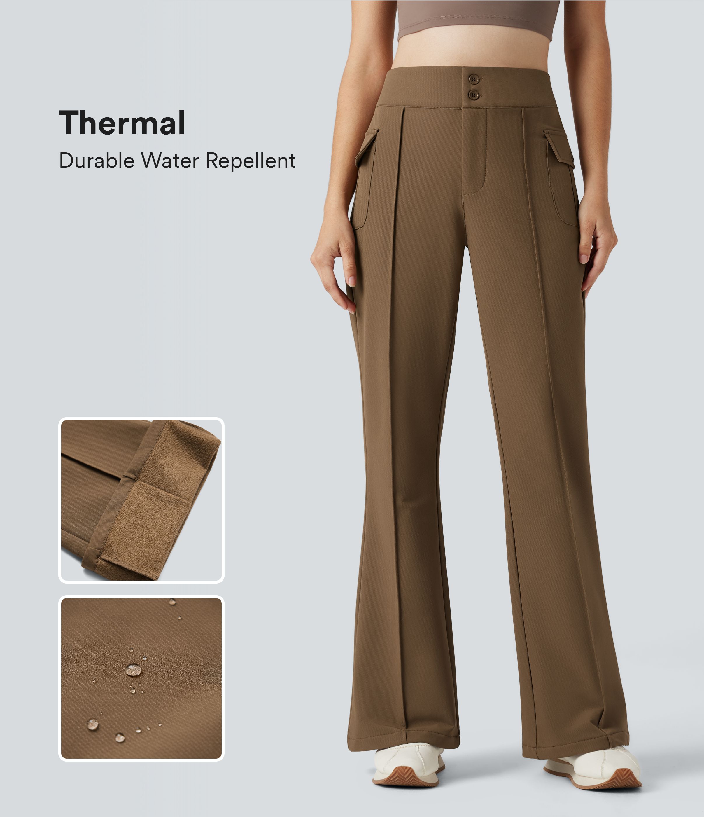 Pantalon de randonnée évasé thermique déperlant taille haute avec poches