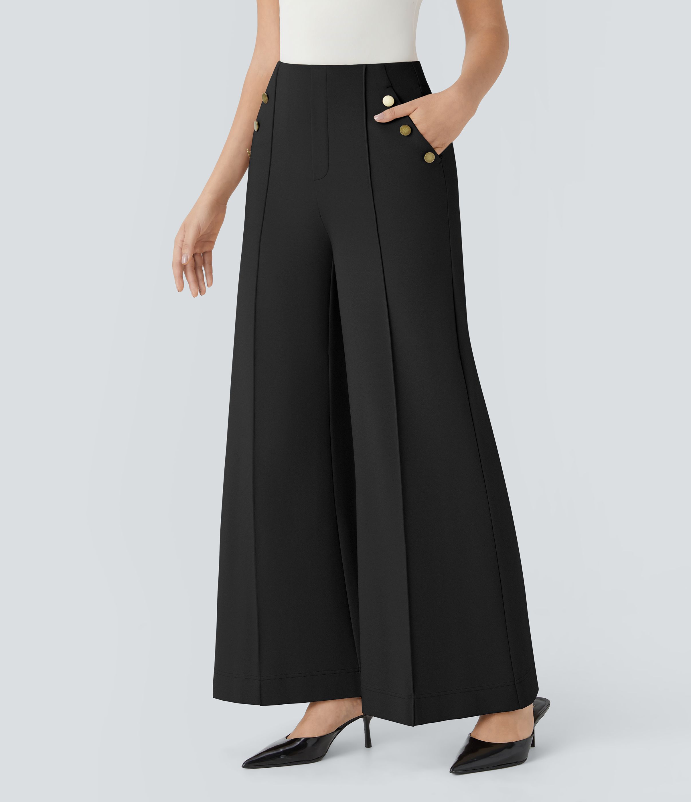 Pantalon tailleur large taille haute avec poches décoratives Halara Flex™ SculptKnit