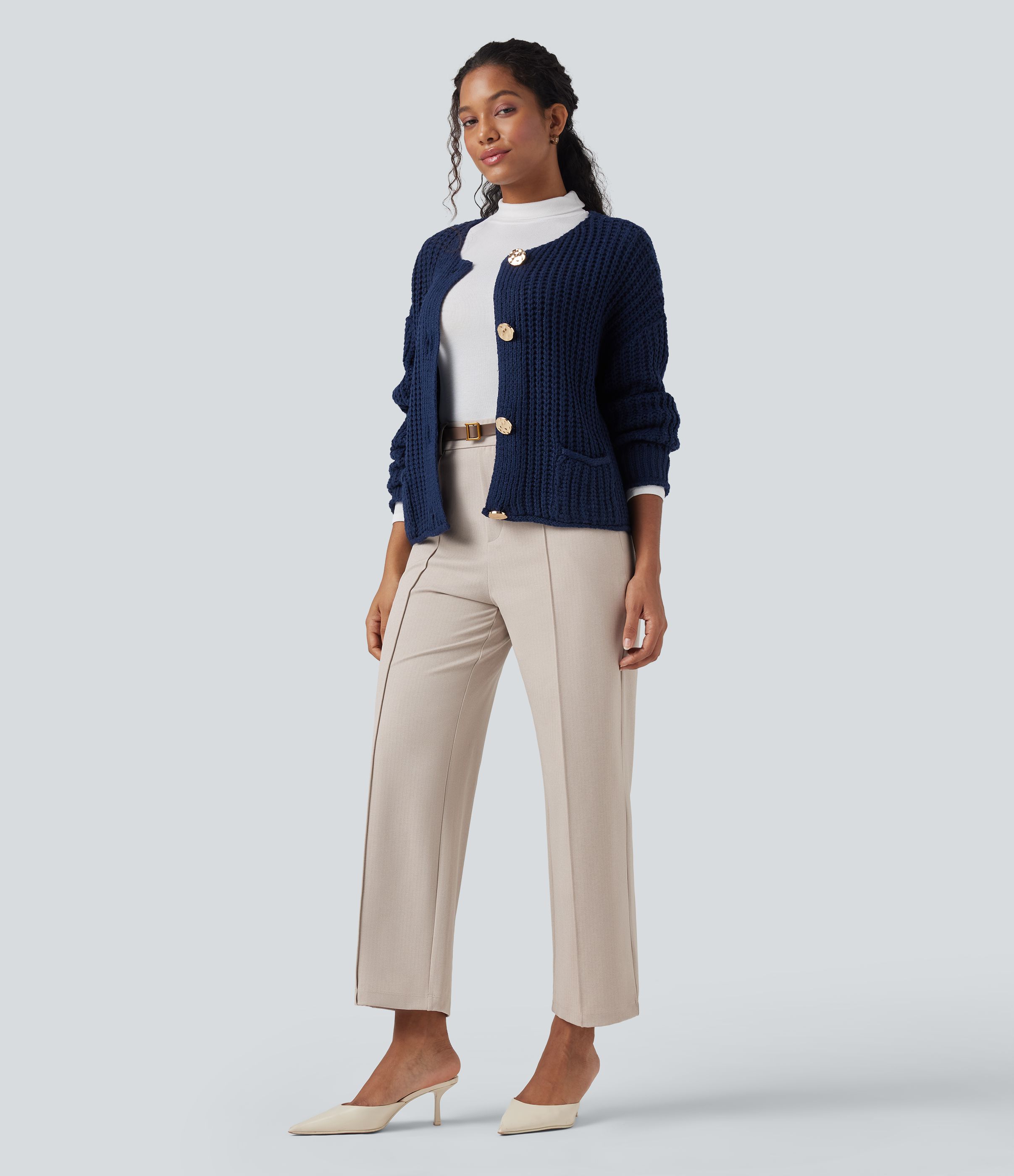 Pantalon tailleur Halara Flex™ taille haute coupe droite chevrons avec poches