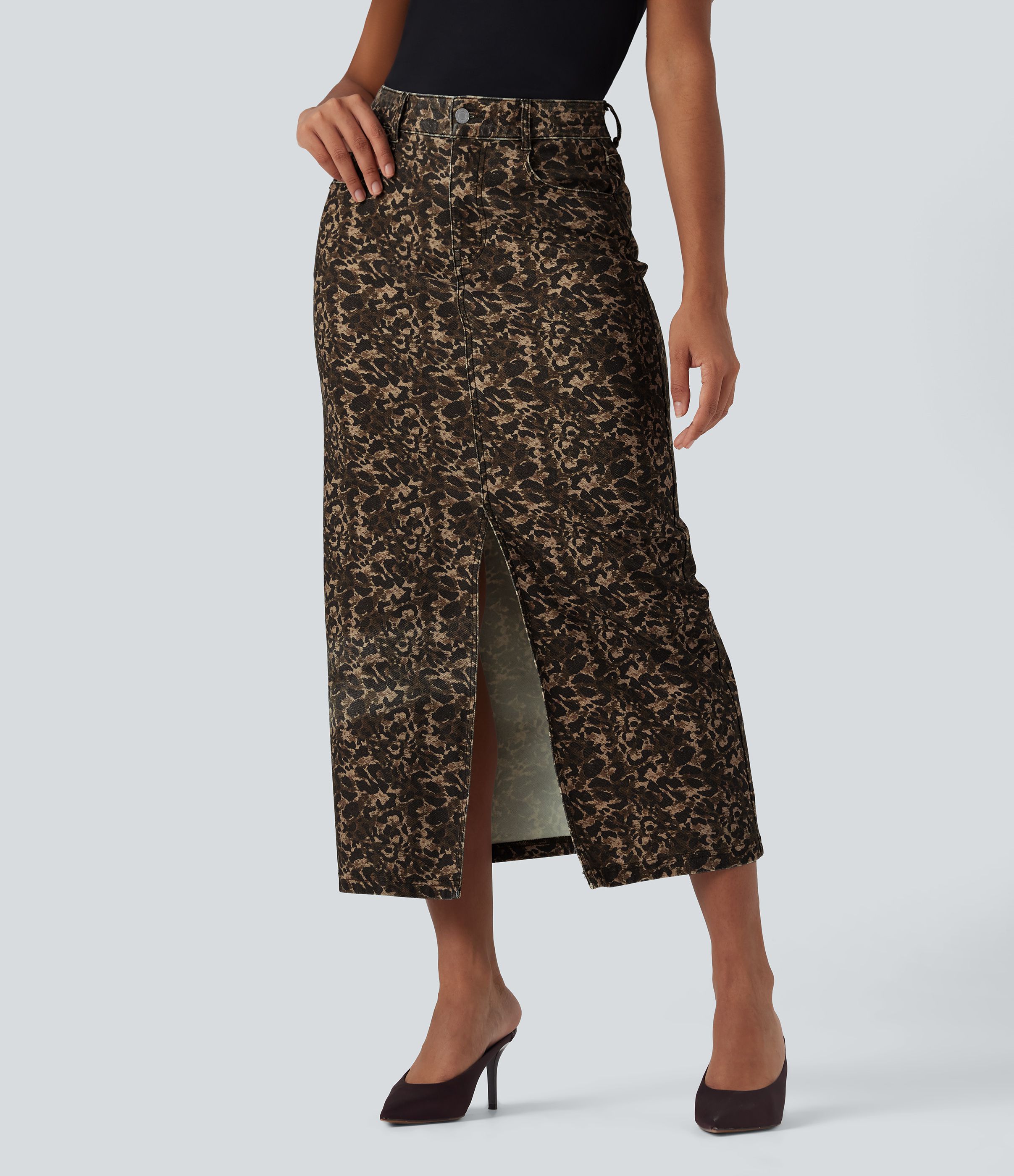 Jupe denim Halara Flex™ droite fendue imprimé léopard taille haute avec poches