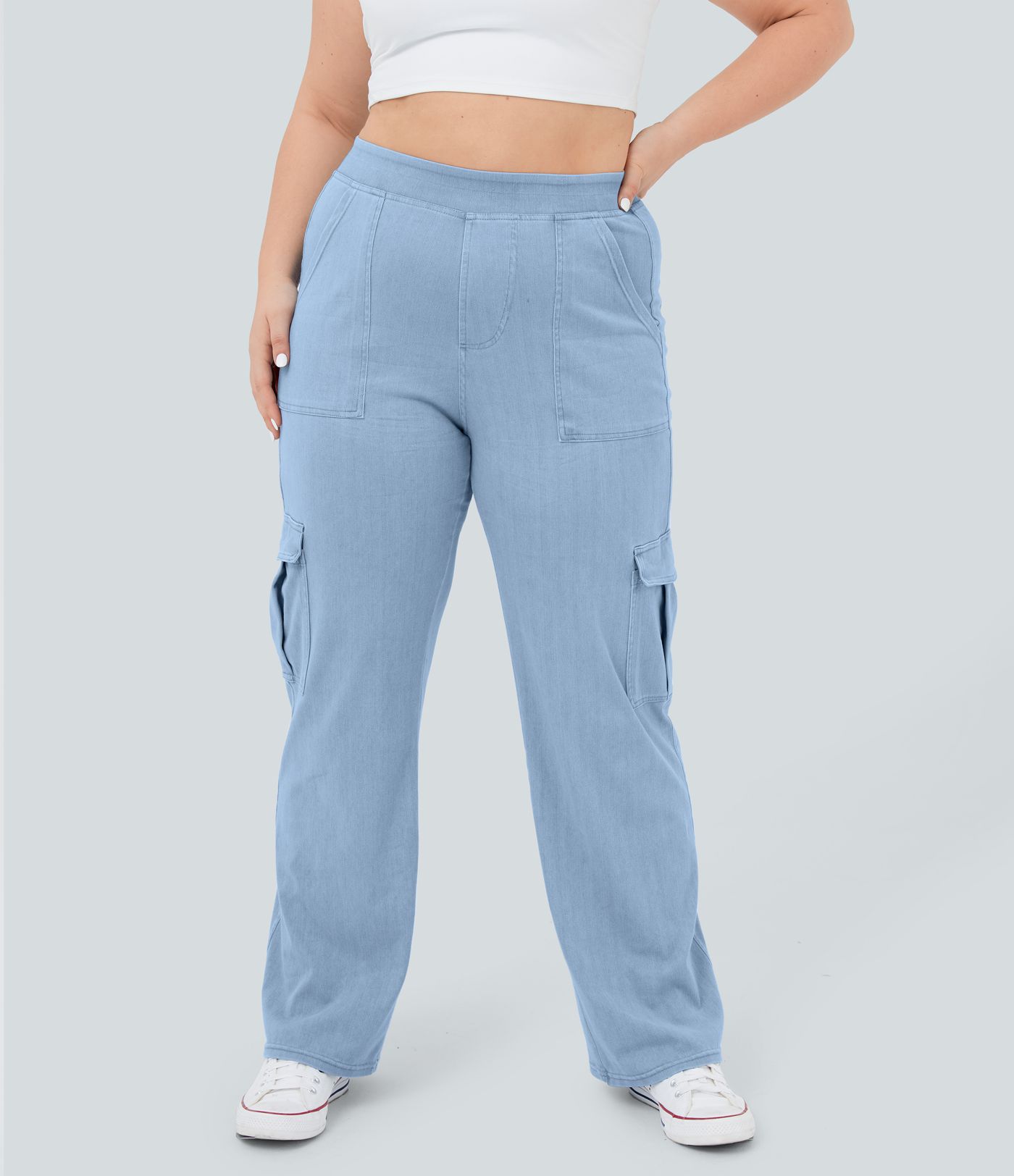 Halara Flex™ Jean Droite Cargo Taille Mi-Haute Multiples Poches Décontracté Extensible Droite Grande Taille