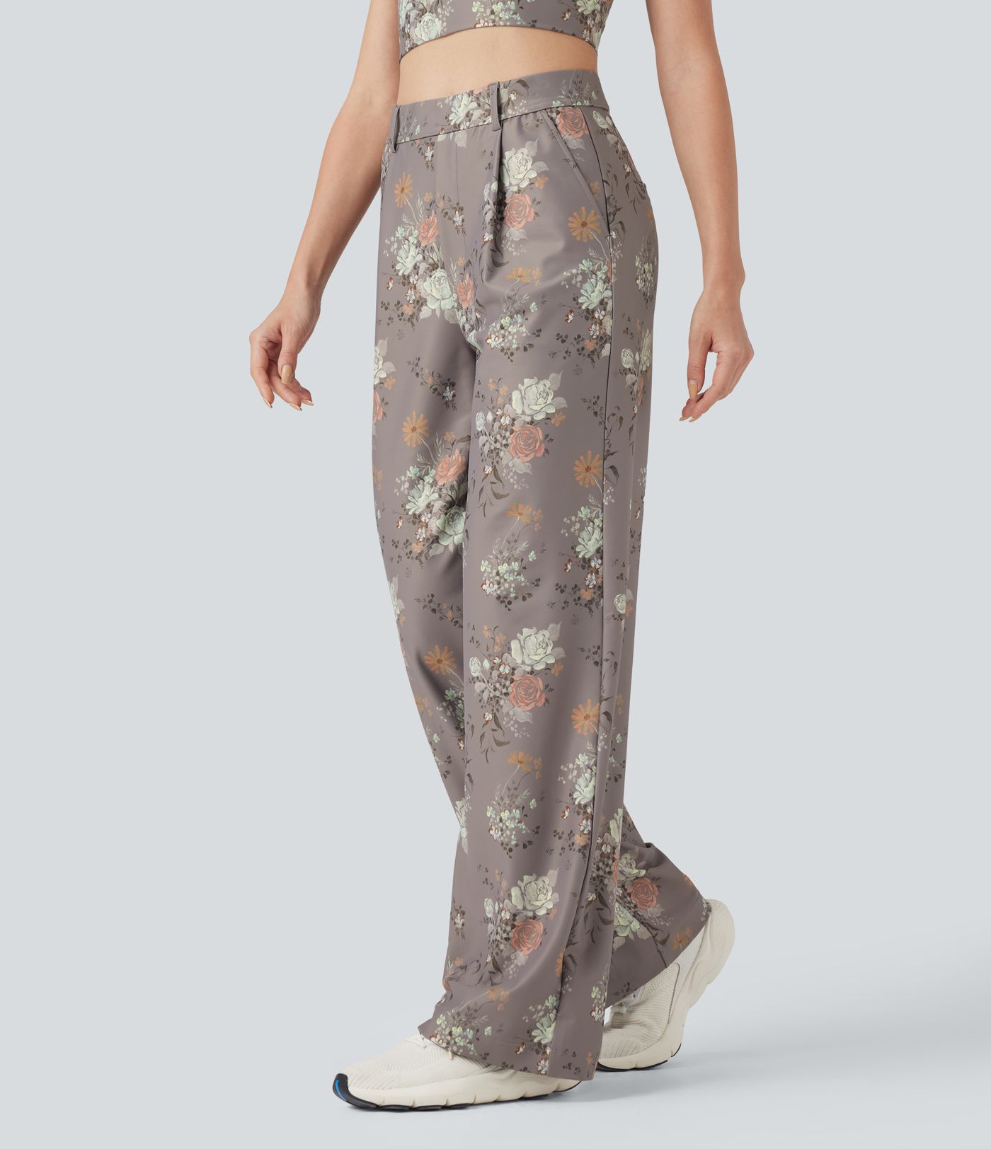 Pantalon décontracté droit à imprimé floral, taille haute Halara X Yukiko, avec poches