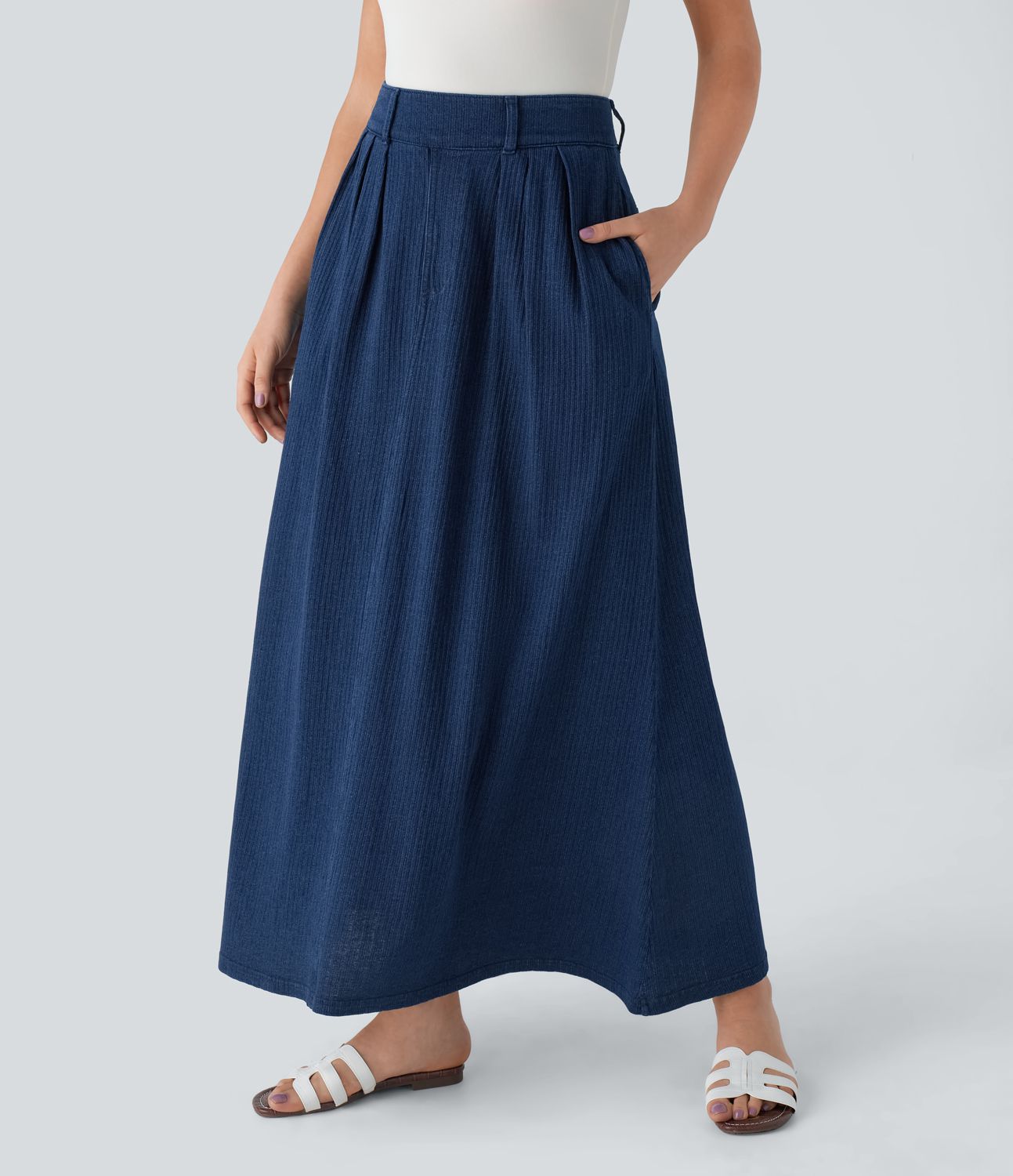 Halara Flex™ Jupe en Jean Longue Casual Tricot Extensible Lavé Taille Mi-Haute avec Poches Latérales Forme A