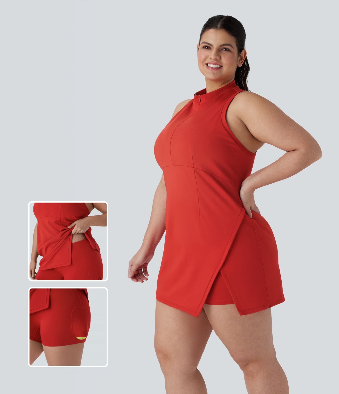 Robe de tennis active 2 pièces mini dos nageur fendue demi-zip grande taille avec poche latérale