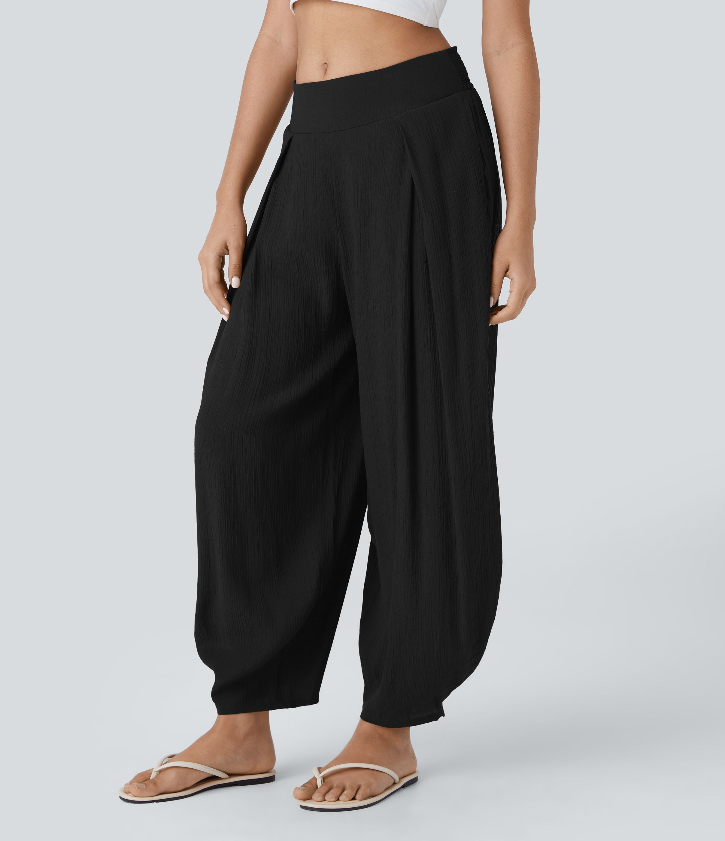 Jogging Casual à Taille Haute avec Élastique à l'Arrière et Poches Latérales Plissées