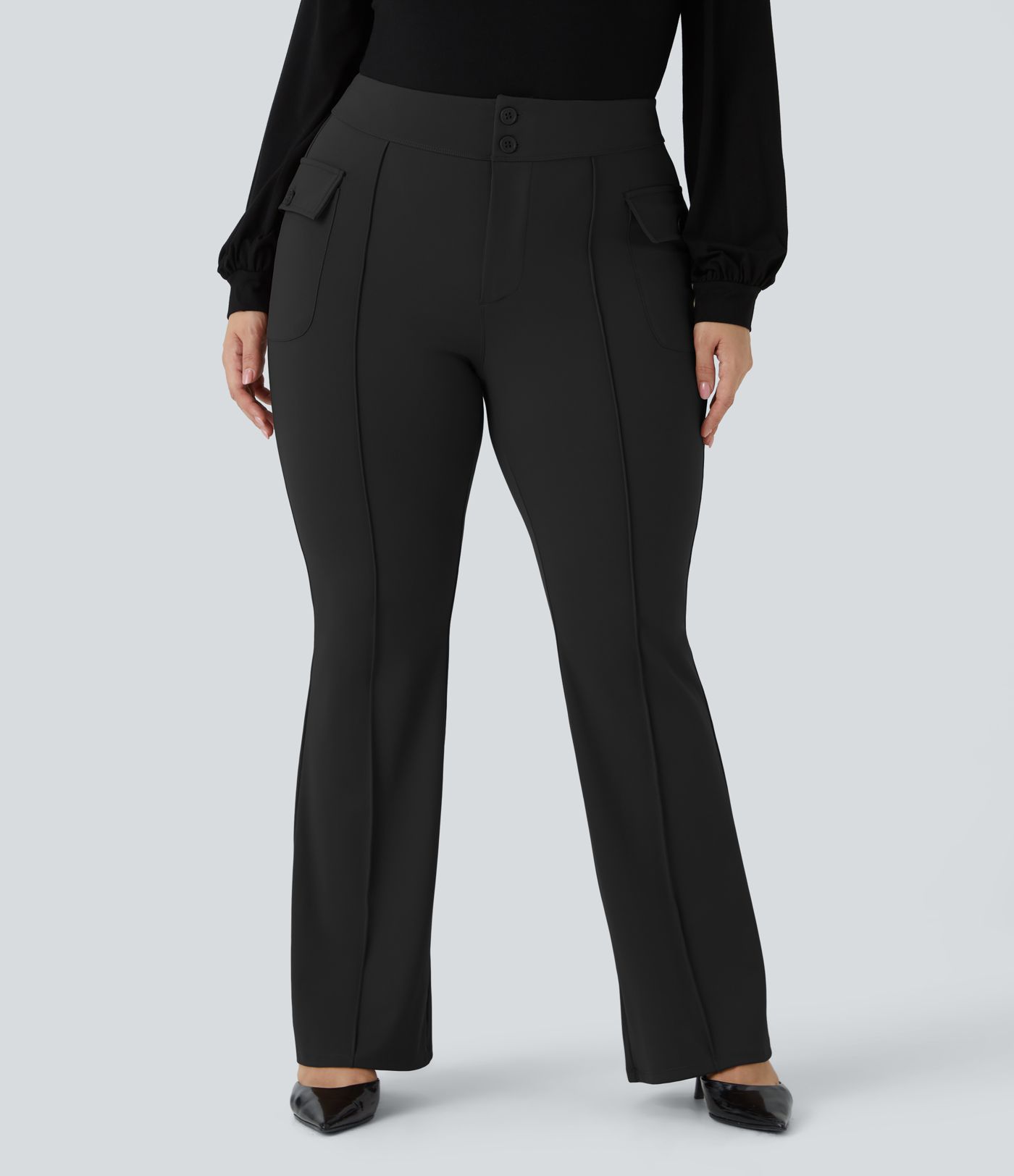 Pantalon cargo décontracté grande taille ample, taille haute, avec poches à rabat latérales