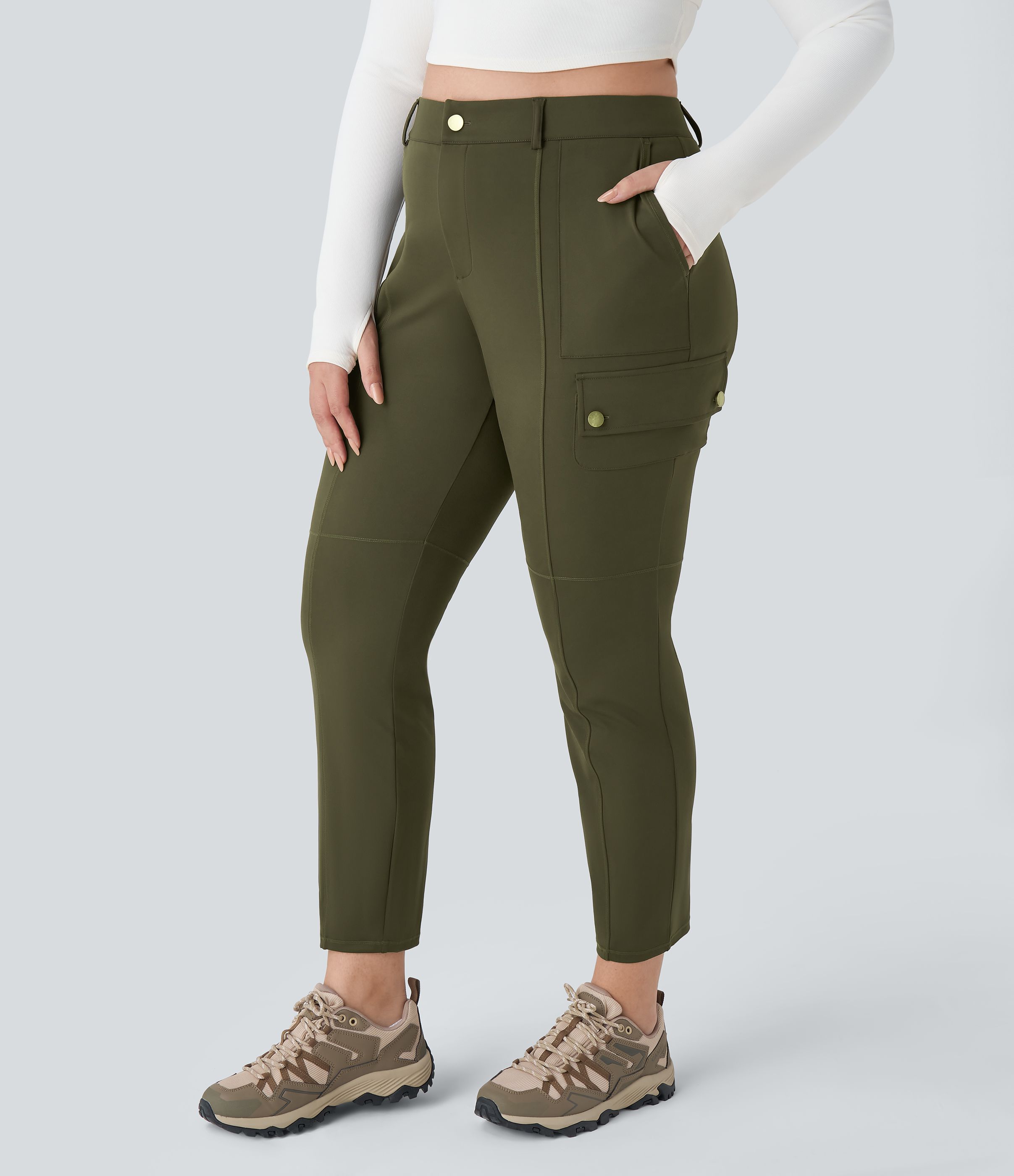 Pantalon Cargo Taille Haute Boutonné Fermeture Éclair Multiples Poches Solide Slim Randonnée Grande Taille
