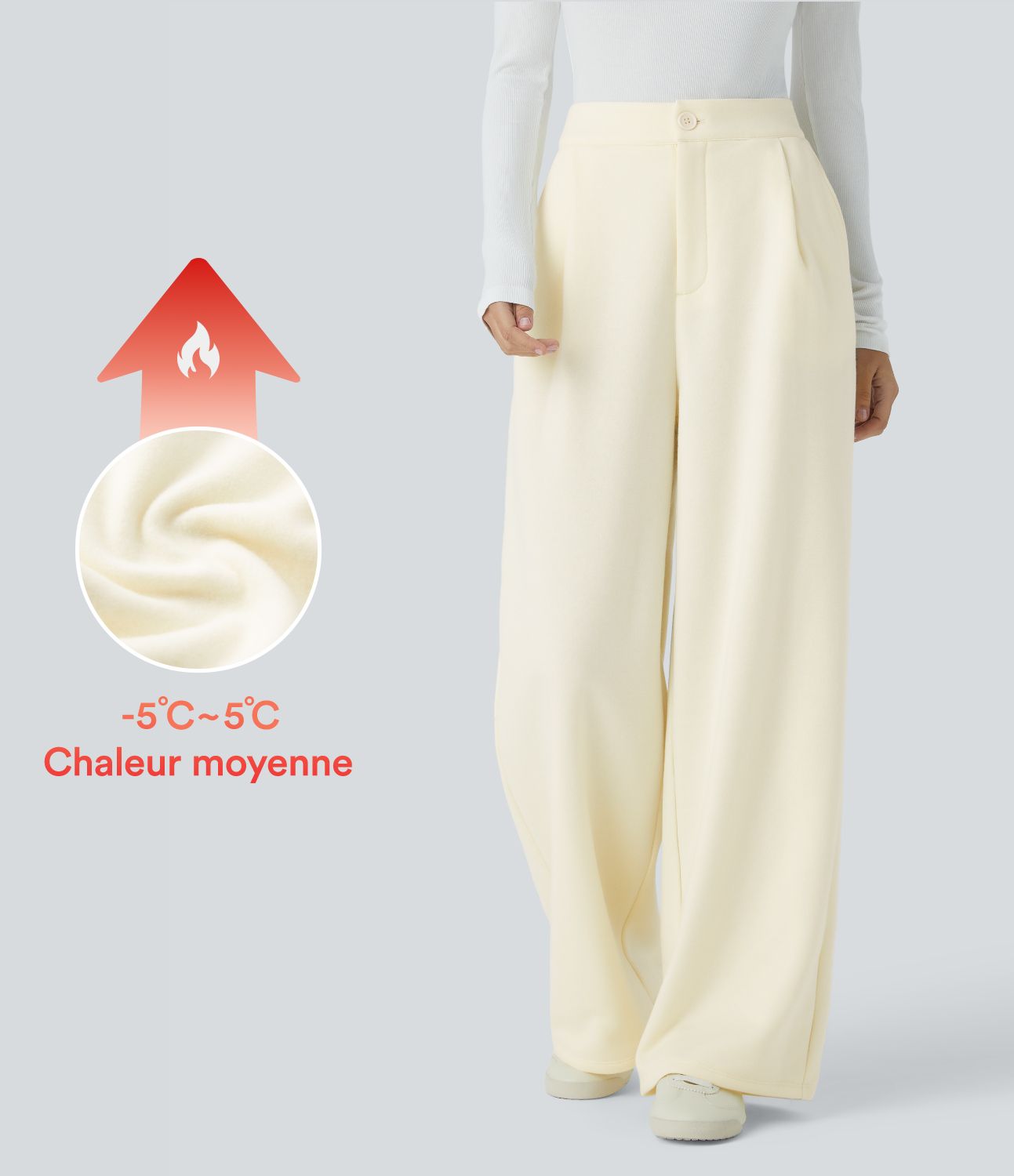 Pantalon décontracté en polaire taille haute avec poches latérales