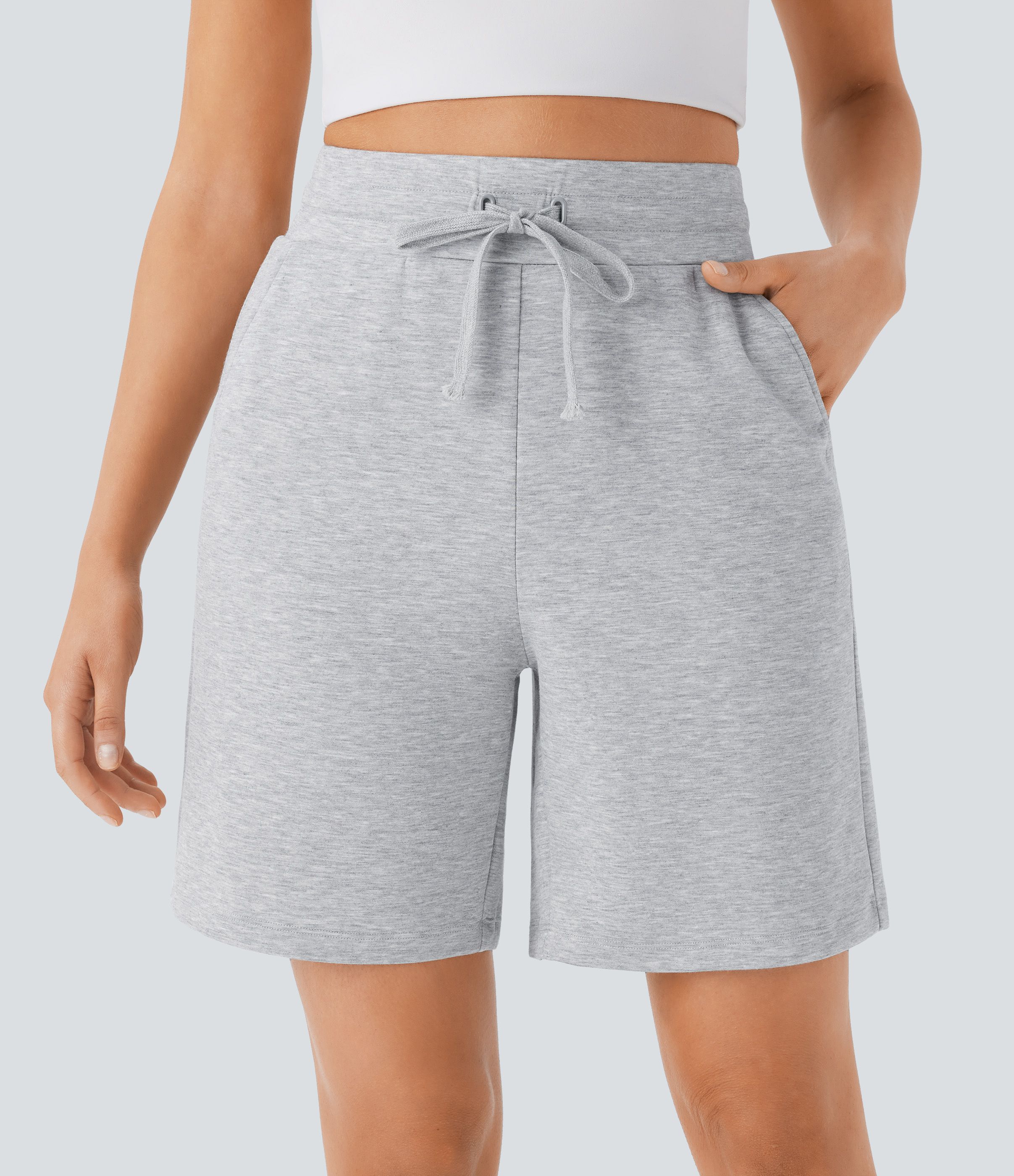 Short bermuda décontracté taille haute avec cordon de serrage, poches latérales 17,5 cm