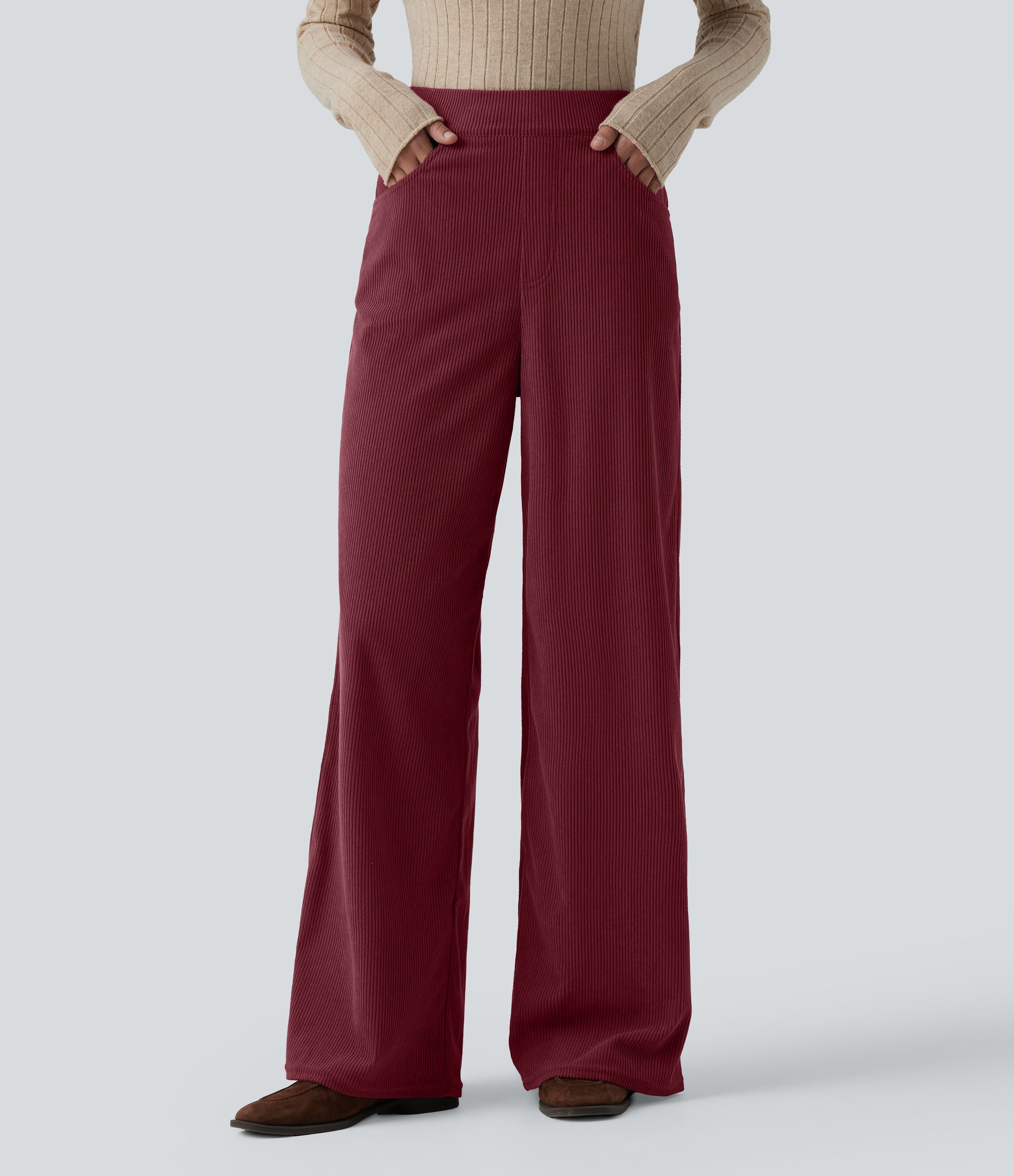 Pantalon velours côtelé tailleur et large Halara Flex™, taille haute, avec poches