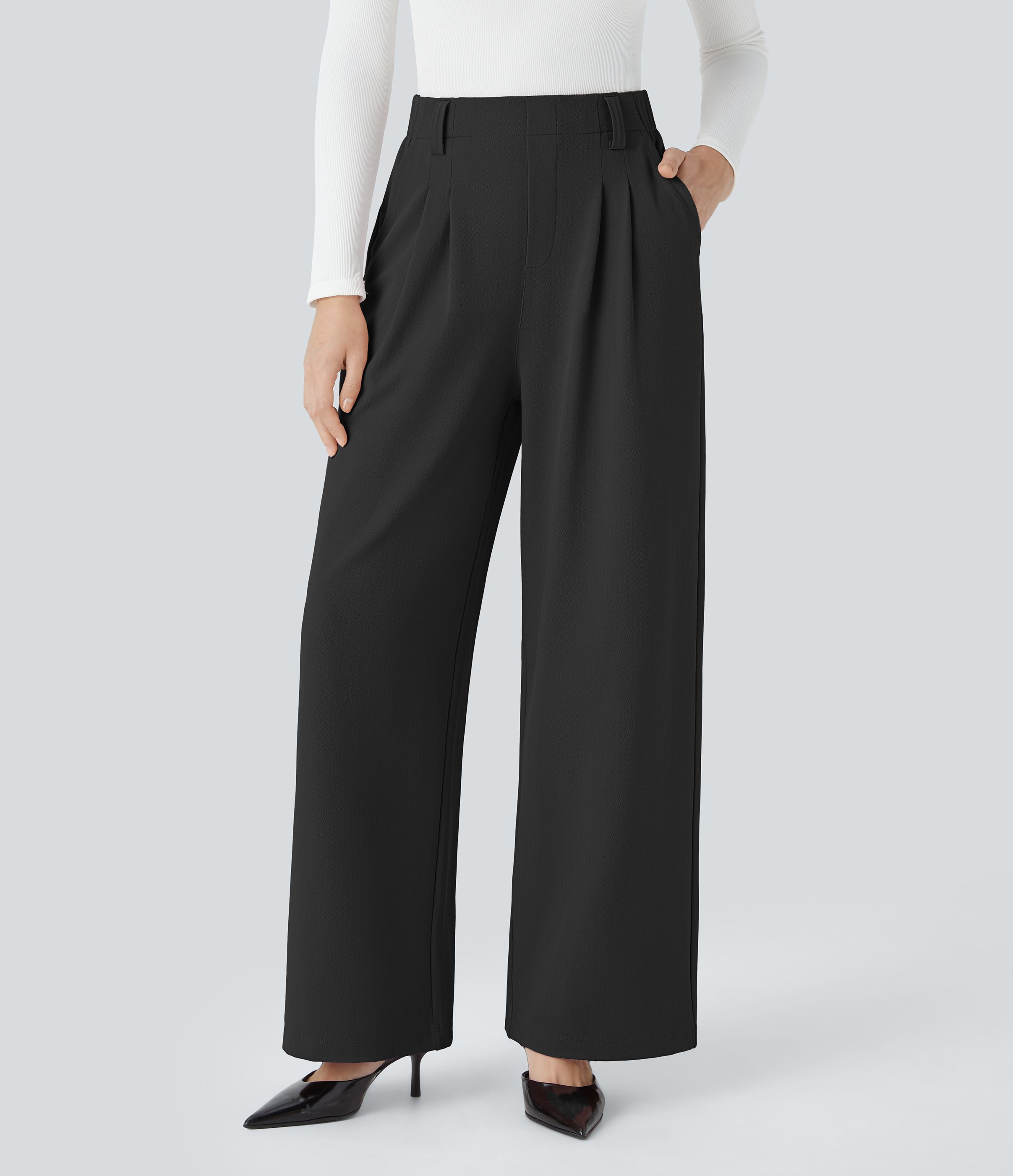 Halara Flex™ Pantalon Tailleur Large Taille Haute Plissés avec Poches Latérales à Chevrons