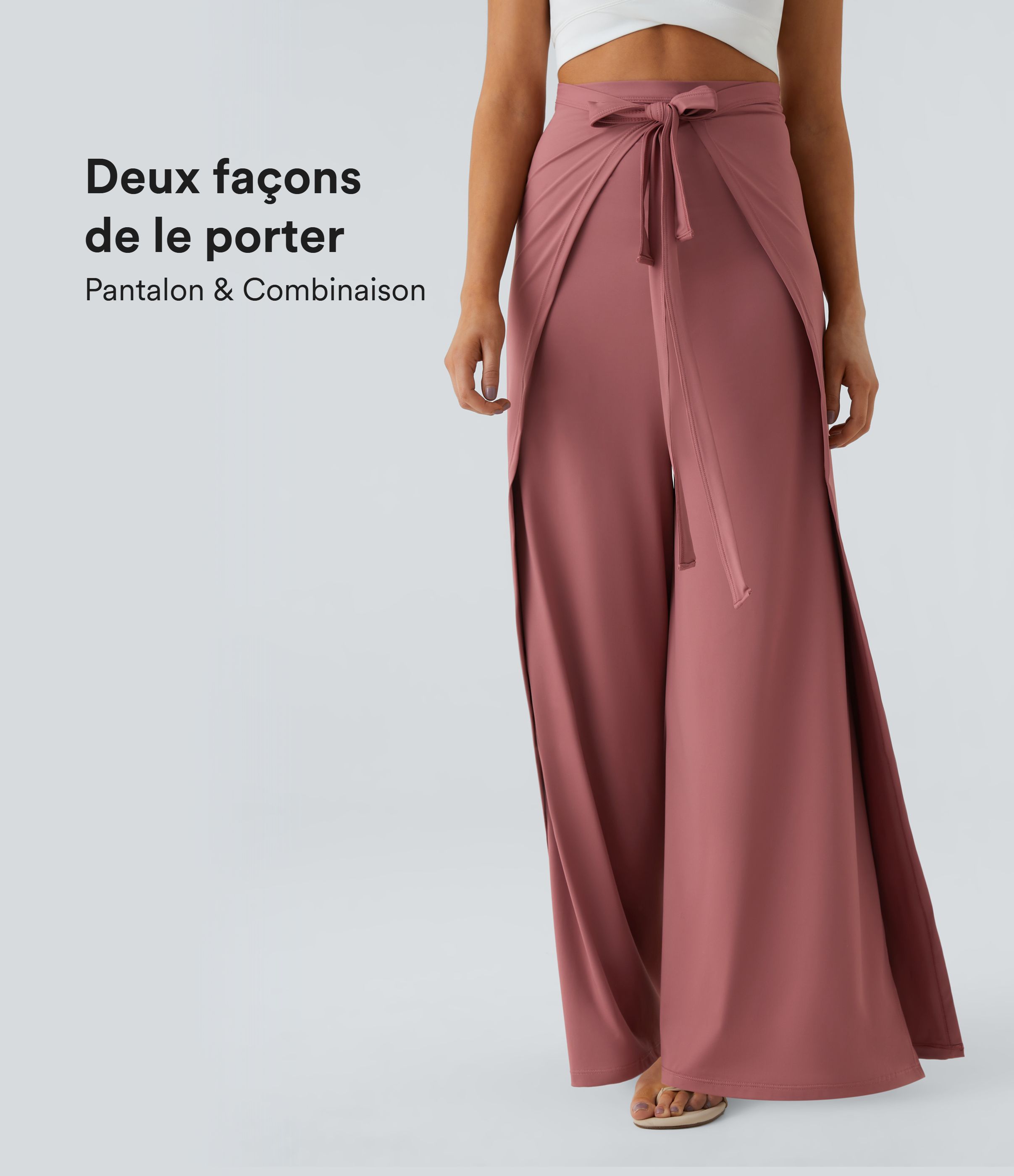 Pantalon décontracté palazzo large fluide, taille haute, avec cordon et ourlet