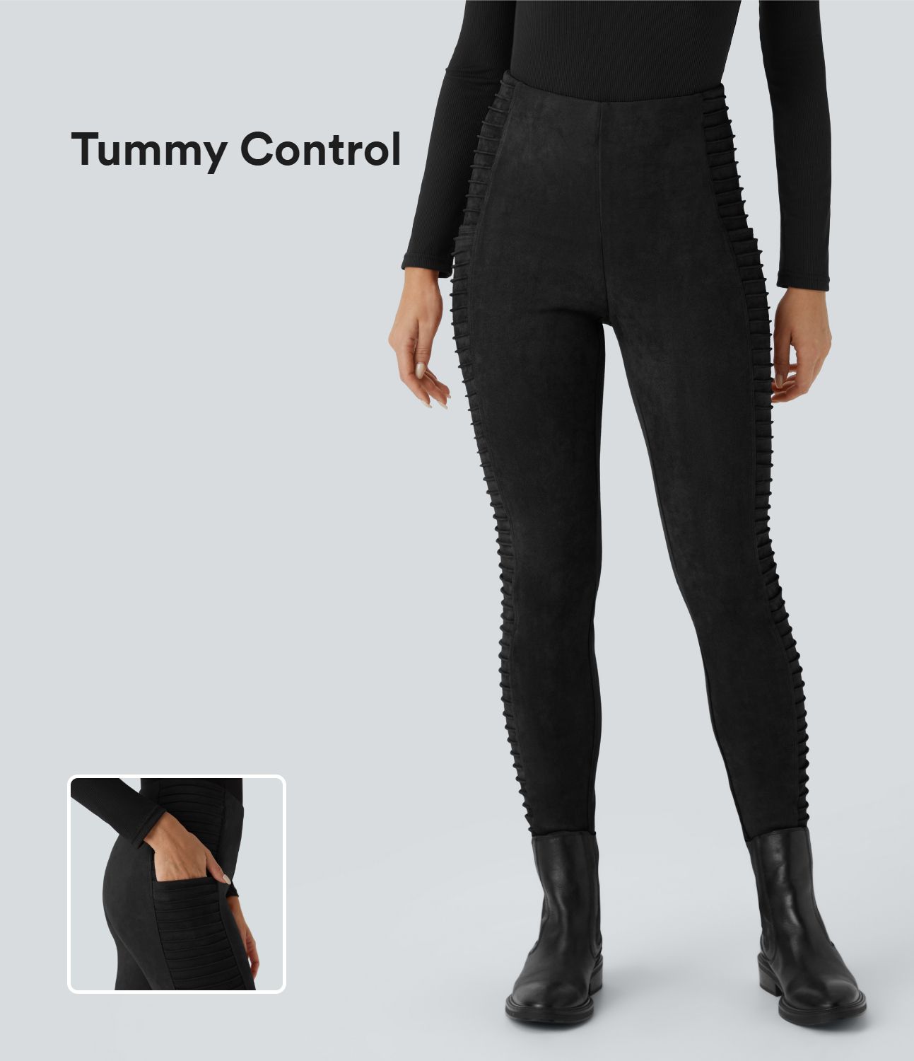 Legging gainant en suédine à taille haute avec fronces et poches latérales