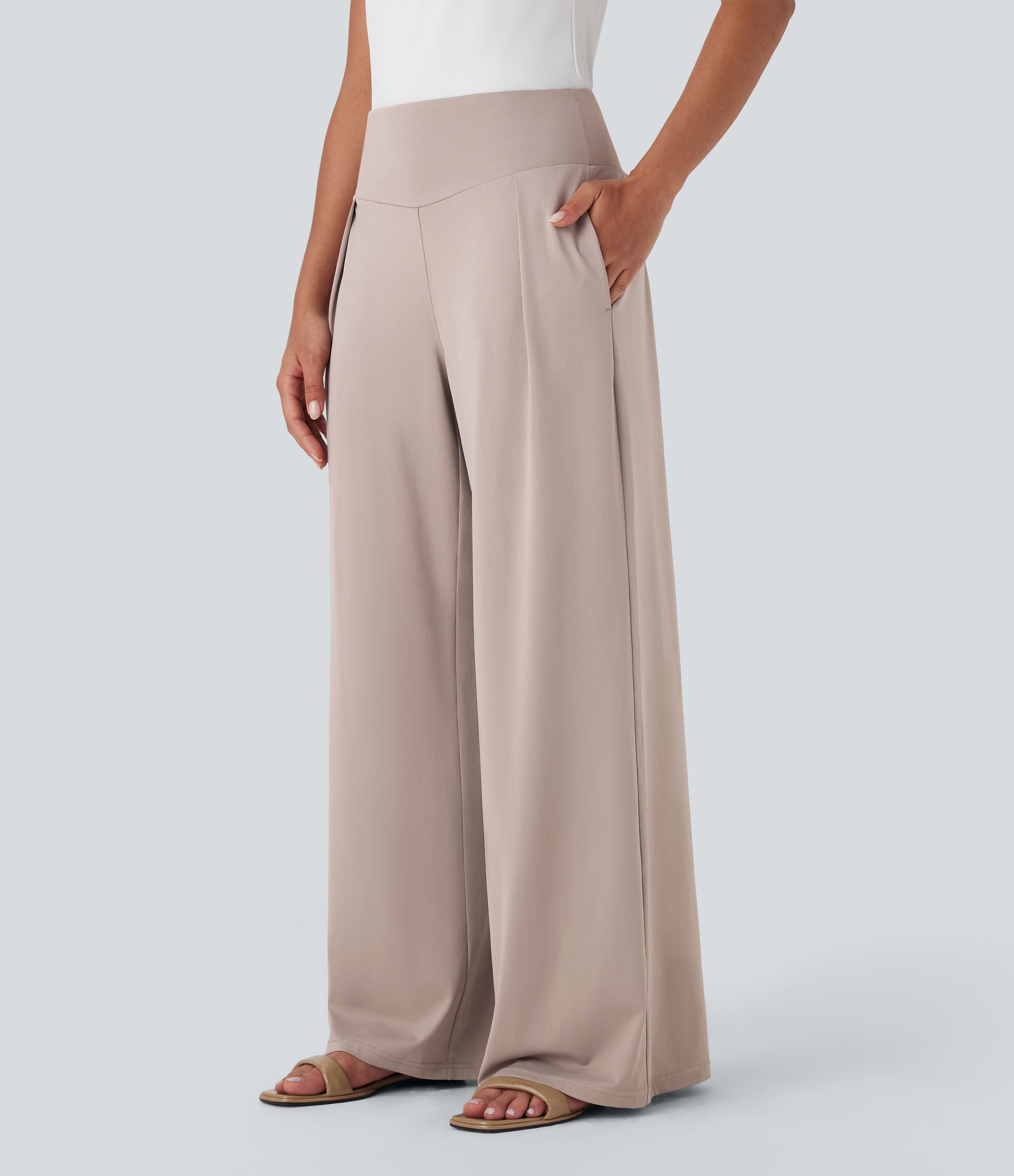 Pantalon large fluide taille haute avec poches latérales