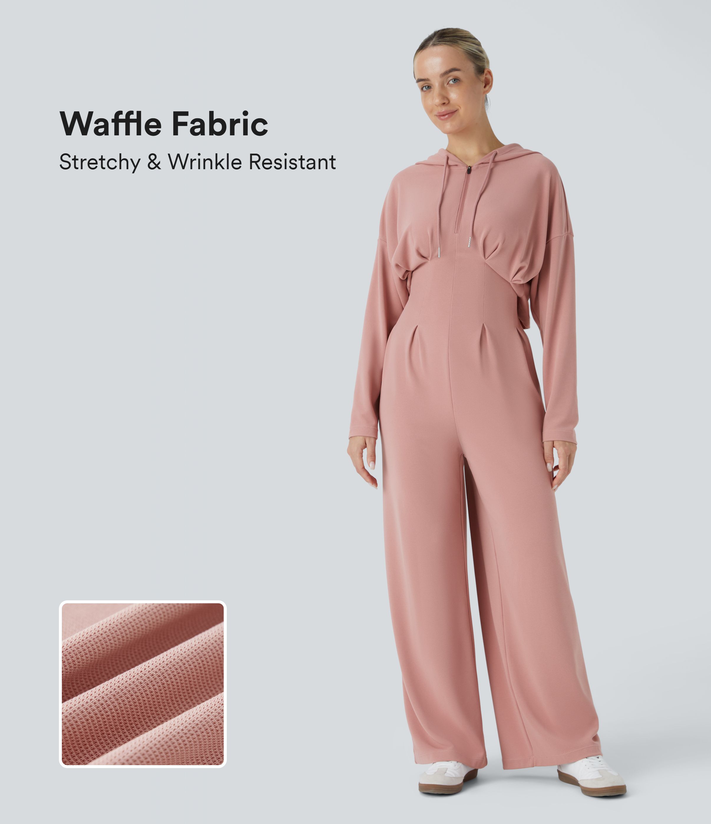 Combinaison Décontractée à Capuche en Tissu Gaufré, Cordon de Serrage, Fermeture Éclair, Plis, Poches Latérales et Découpes