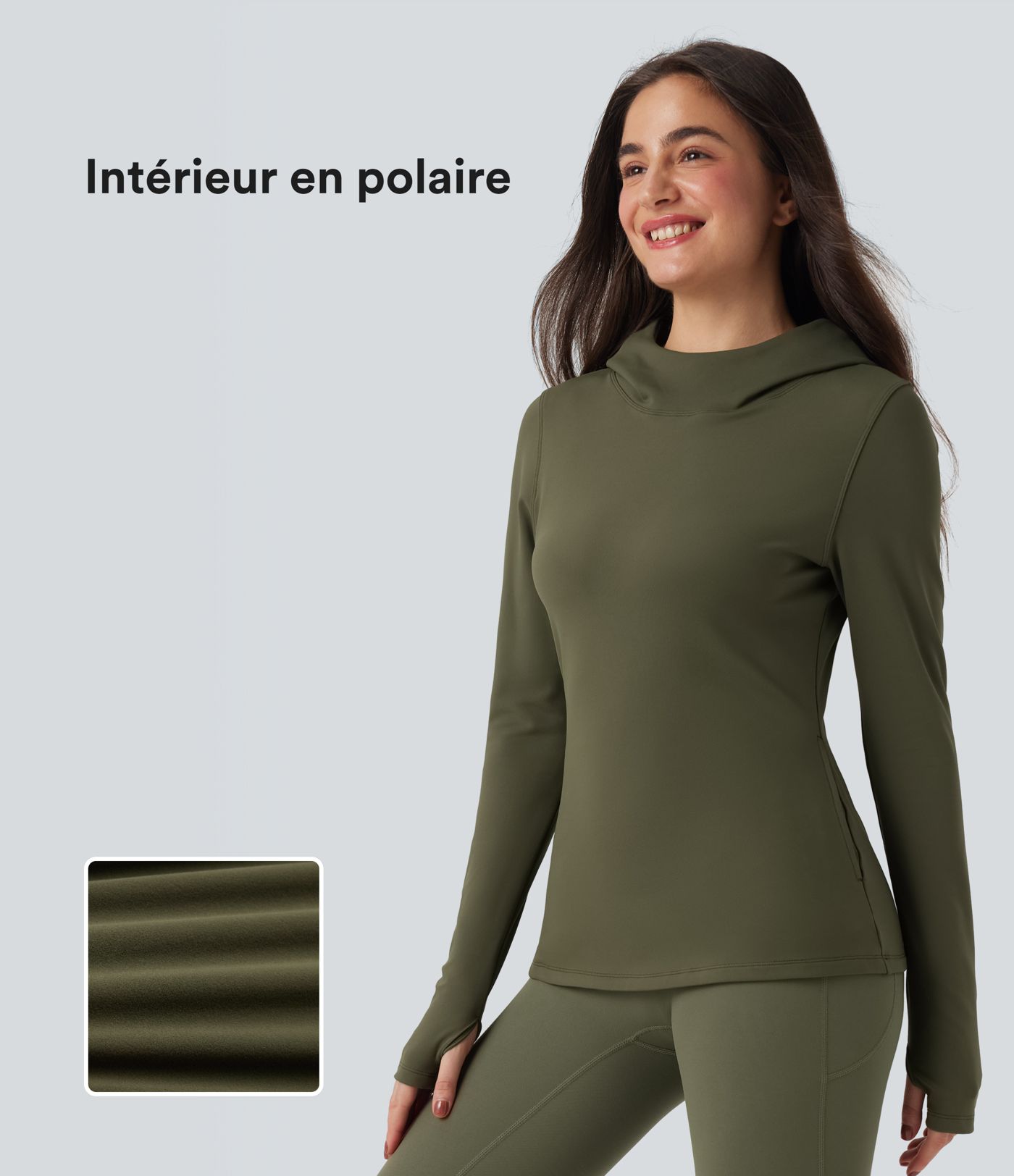 Sweat à capuche en molleton manches longues avec trous pouces et poches pour randonnée