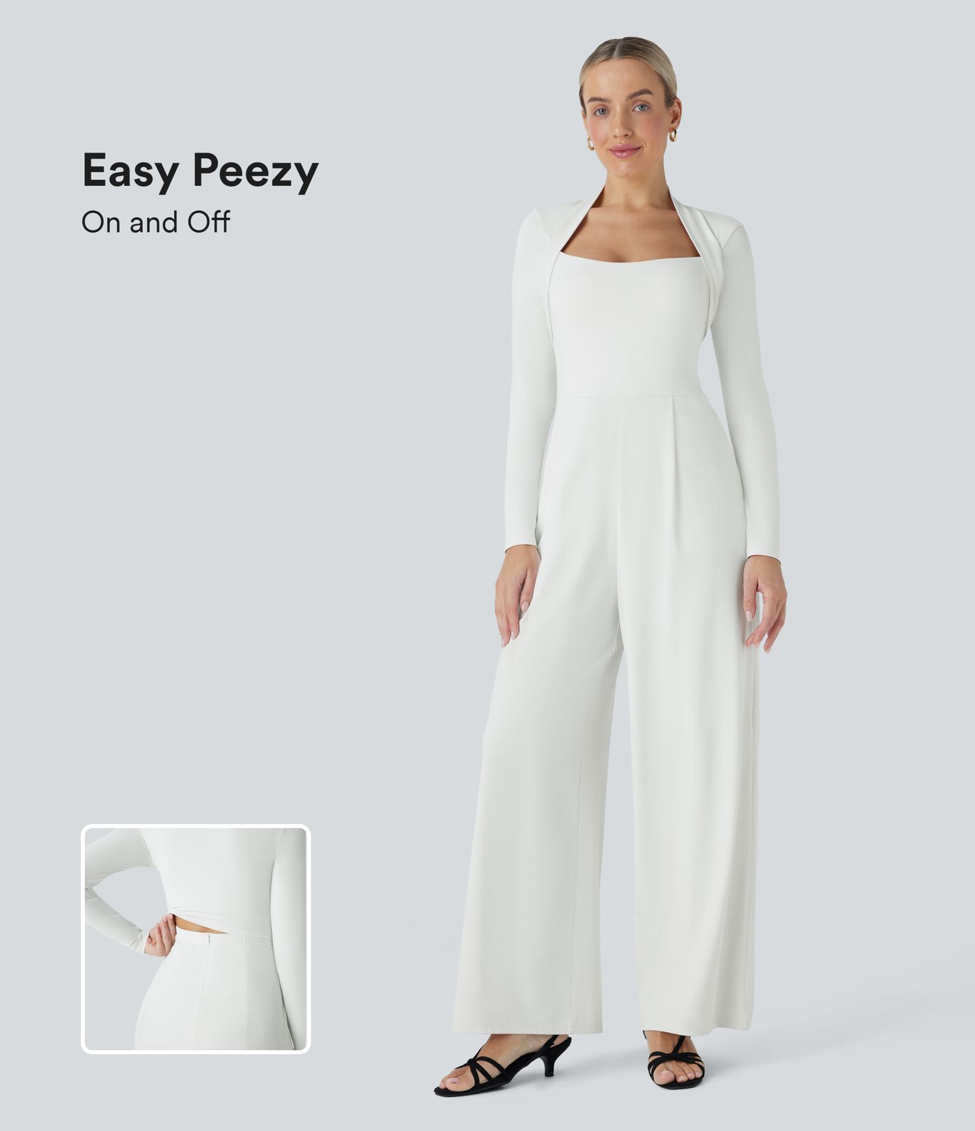 Combinaison demoiselle d'honneur et invitée de mariage à jambes larges, manches longues et fermeture éclair invisible avec poches - Édition Easy Peasy