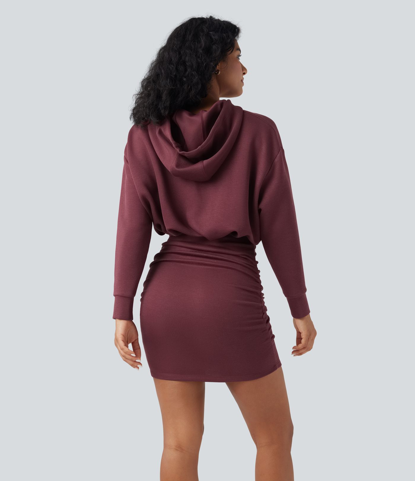 Robe sweat à capuche mini moulante manches longues froncée