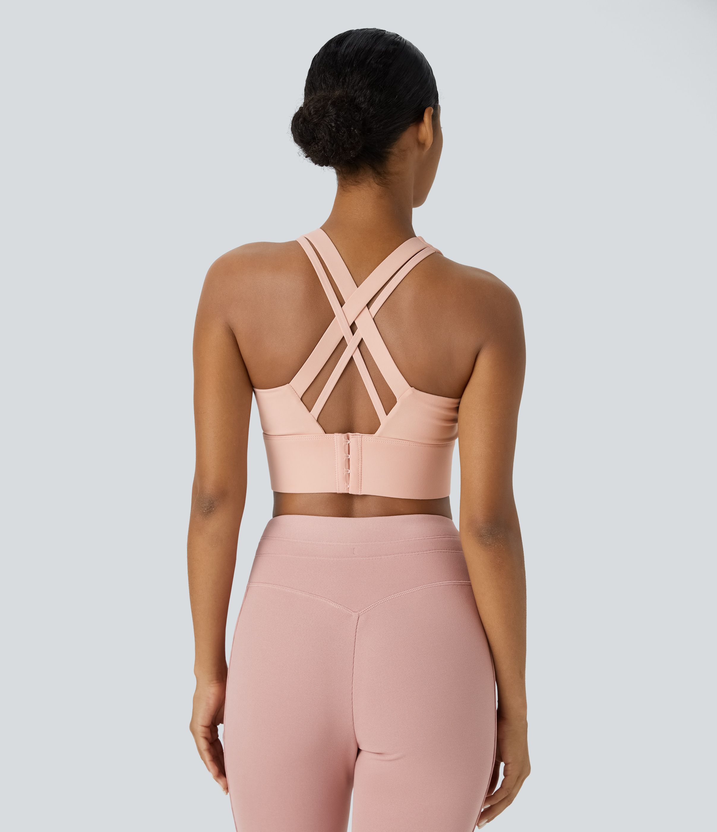 Running sports bra with U-neck, medium support, adjustable hook-and-eye closure, A-C