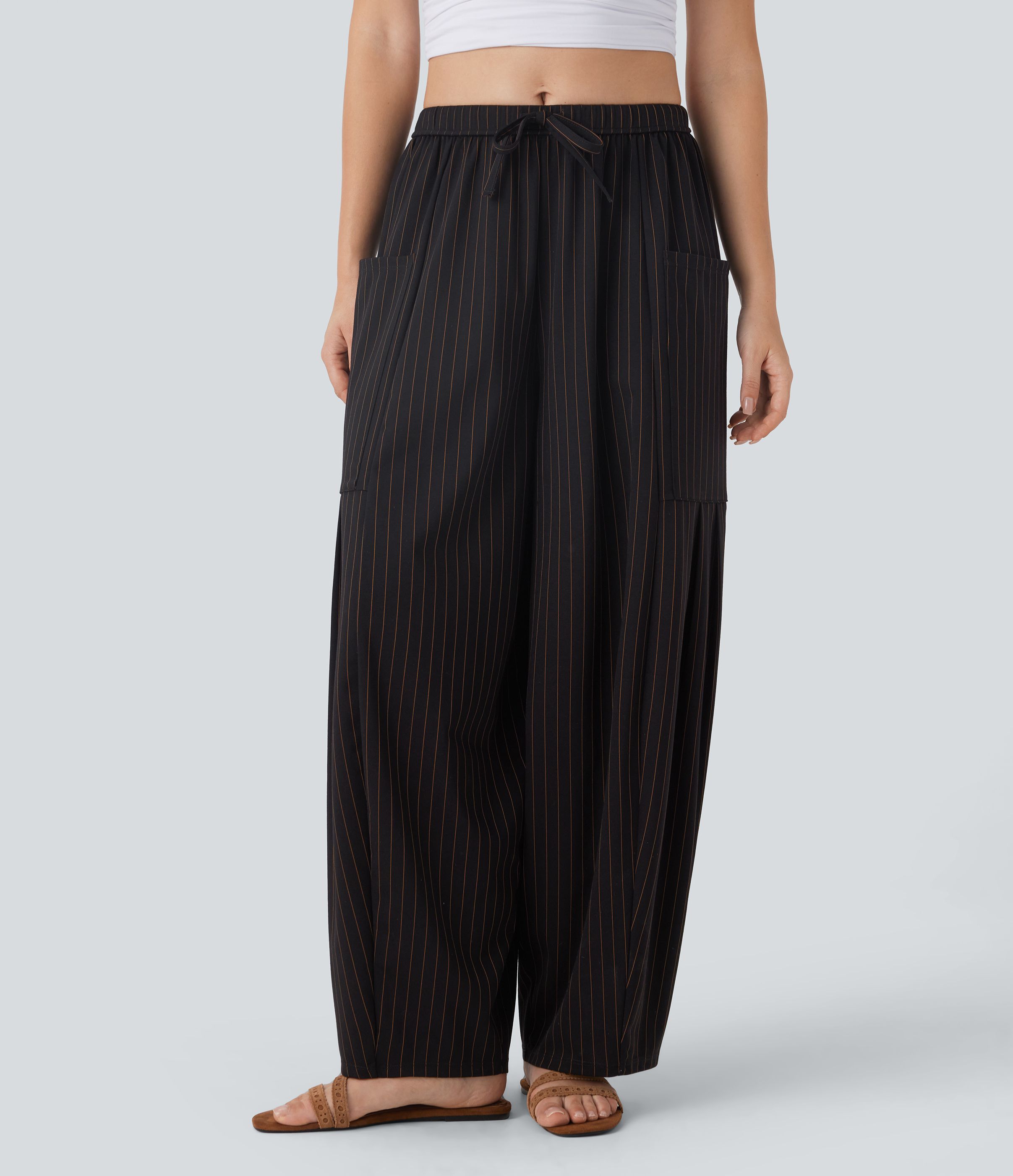 Pantalon barrel oversize à rayures cool touch, taille mi-haute, avec cordon et poches