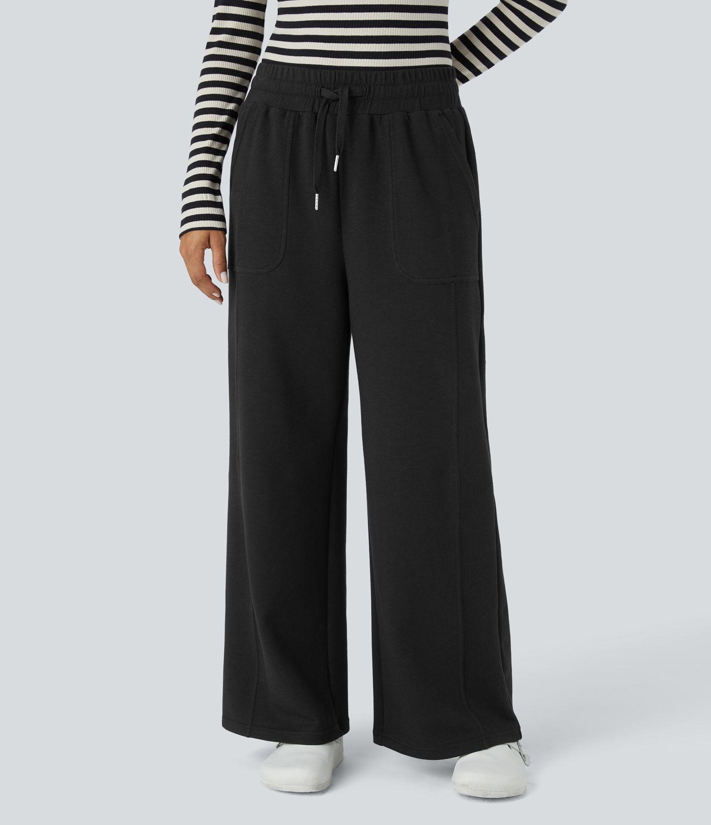 Pantalon jogging décontracté droit à taille moyenne, cordon de serrage et poches latérales